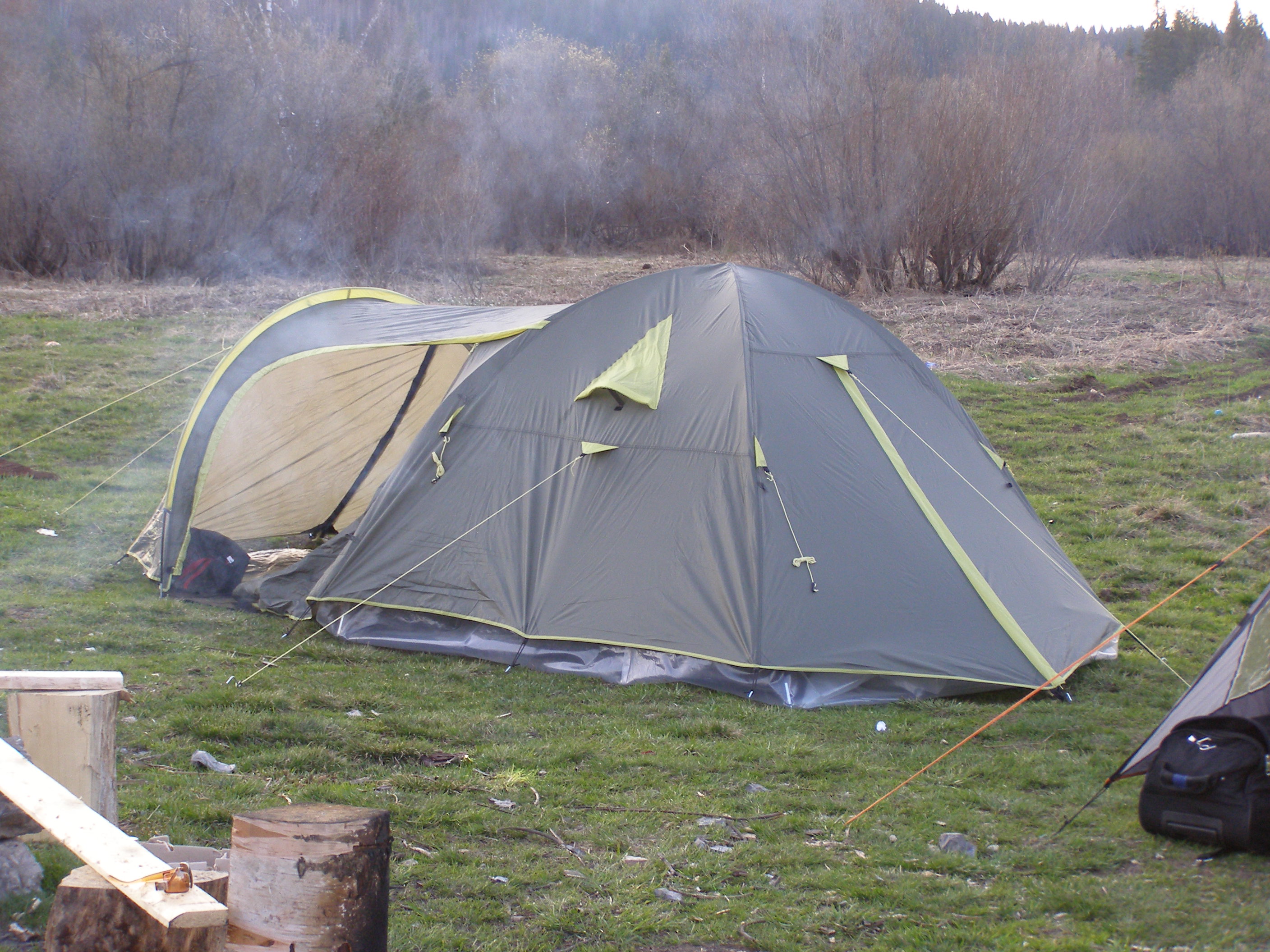 Krola Опубликовано 12 мая, 2011 Опубликовано 12 мая, 2011 хочу похвастаться новенькой палаткой (спасибо Юле!) заказали палатку 3х местную, но вчетвером нам было сааавсем не тесно (4 пенки уложила легко). порадовал большой "тамбур" с дном! (у многих палаток тамбур просто натягивается над землей, а под рюкзаки надо чего нибудь подкладывать, иначе отсыреют к утру). вобщем мы оччень довольны!!!