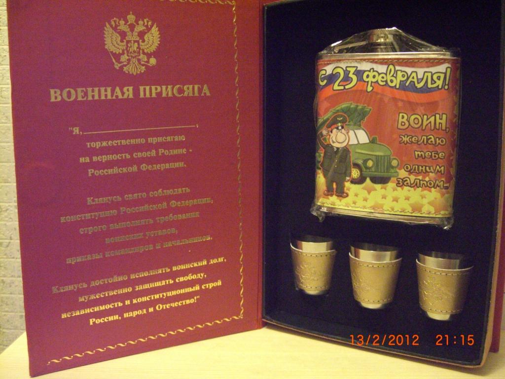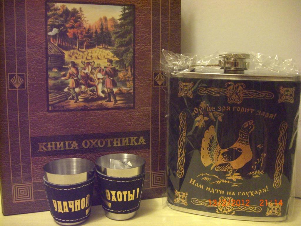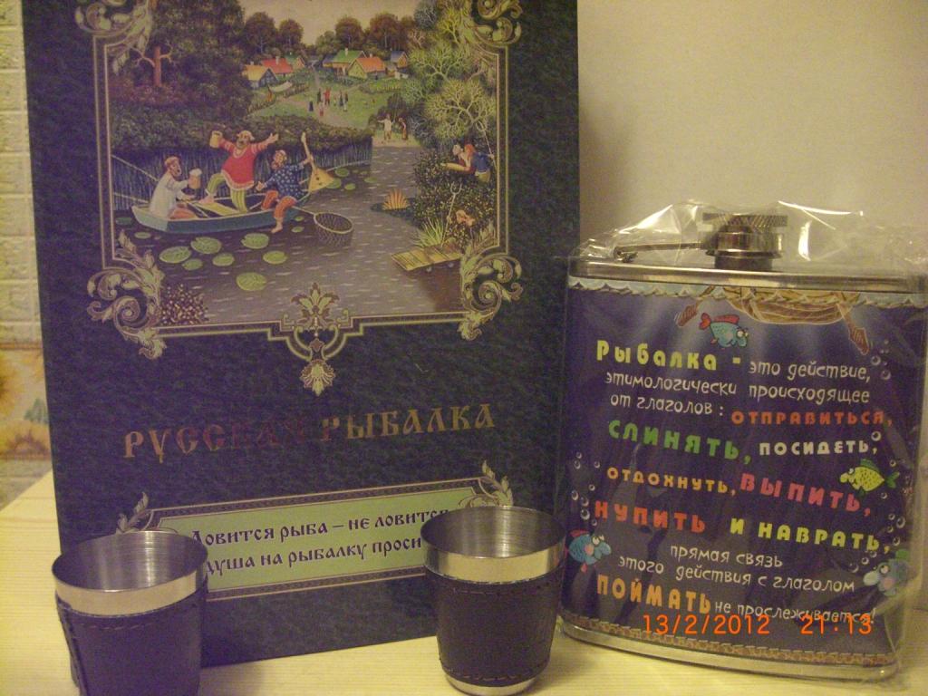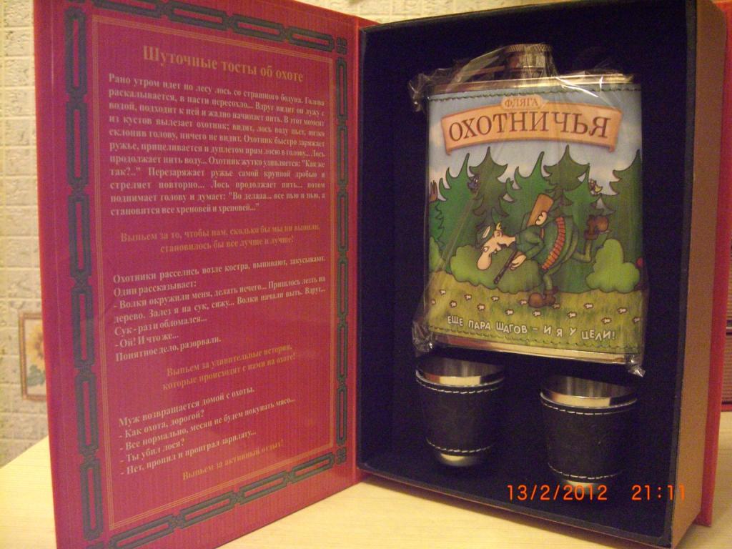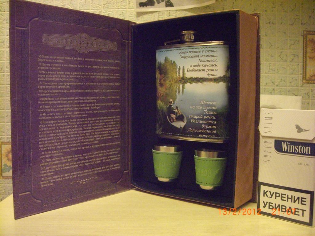 ilaidens Опубликовано 13 февраля, 2012 Опубликовано 13 февраля, 2012 Ой, я тоже похвастаюсь. Сегодня забрала заказ у Марины из темы Игрушки, сувениры и много всего интересного -4. Заказывала сувениры на 23 февраля нашим мужчинам на работе, а именно фляжки со стопками в сувенирных коробках, стилизованных под книгу. Переживала за качество книг-футляров, так как вроде бы металлические фляжки испортить сложно. Пришли. Очень довольна качеством - плотный картон, глянцевый, сделано аккуратно. А вот и фото: