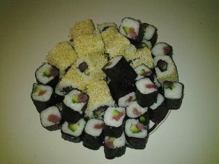 olga-mi Опубликовано 6 марта, 2012 Опубликовано 6 марта, 2012 Анечке большое спасибо за закупку Все для суши от меня и от Марьямки :ct: Это у нас марья-искусница Марьям старается (фотки только у нее не получается вставить, меня попросила). Они с телефона, не придирайтесь. Но зато роллы очень аккуратненькие и аппетитненькие! Марьям, пиши рецепт, а то у меня почему-то когда я режу их, они все прижимаются и совсем уже некрасивые, вот я и не фоткаю...Интересно, это от качества приготовления риса зависит или от качества заточки ножа :bw: