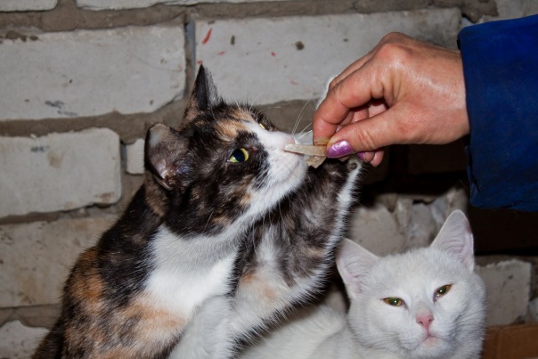 Ольга Жигульская Опубликовано 14 ноября, 2010 Автор Опубликовано 14 ноября, 2010 Все, что на фото - живут на временной передержке у Анны Егоровны, которая оборудовала под пушистиков маленькую комнатенку, предназнченную для инструмента дворников. Анна Егоровна - пенсионерка, бывает, что подкармливает до 50 кошек, лечит их, приучает к лотку, а потом устраивает в добрые руки. Если кто имеет возможность и желание помогите, пожалуйста, этой славной женщине продуктами питания и лекарствами, она в этом очень нуждается. Её телефон: 8-908-263-26-29 Есть в нашем городе и еще некая Зинаида Смирнова. Если Анне Егоровне удалось оборудовать комнатку, то у Зинаиды ее нет, она просто ходит по районам и кормит, кормит, кормит...Я вообще не представляю, как она еще держится, очень тяжелое заболевание, а к нему еще целый букет. Варить она не может, потому что задыхается. Женщина одинокая, пенсия маленькая. Ее подопечные живут в сырых подвалах, в которые и проникнуть то порой нельзя. Кошечки и котята в основном дикие, к людям не подходят. Самое идеальное помочь Зинаиде сухими кормами, самыми дешевыми хотя-бы, которые она в ведерках спускает в подвалы. Раньше мы имели возможность, хоть как-то ей помогать, отдали немного кормов, собранных с акции "Подарим им праздник". Пришлось давать и для собак, потому что для кошечек мало собрали, но это так все быстро закончилось :dada: Еще можно привезти рыбы и костного остатка. Предлагали рыбу, немножко просроченную,которую мы иногда варим нашим питомцам, но коты привередливые, ее не едят. Откликнитесь, пожалуйста, кто чем может, там реально очень, очень все плачевно. Телефон Зинаиды: 8-912-485-70-67