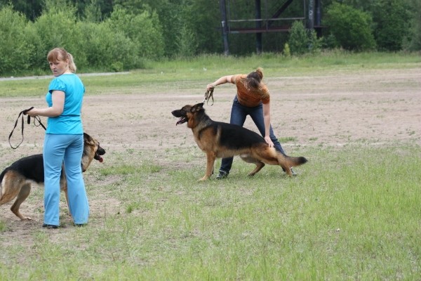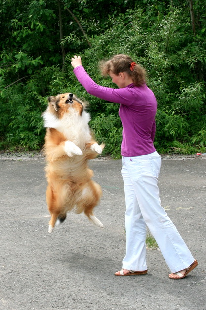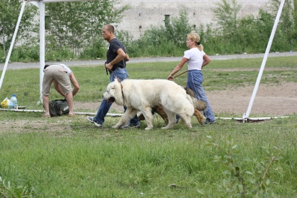 shadia Опубликовано 29 июня, 2011 Опубликовано 29 июня, 2011 Наконец то я собралась написать как прошла для нас выставка... Так как это первое такого рода для меня мероприятие, я даже не подозревала что меня будет ждать. Придя на выставку и увидев большое количество собак, людей, видео-фото камер - я растерялась, ручки затряслись ножки ватными стали. И мысли так и бегают тюды-сюды... Как это я буду со щенком на ринге, на меня же смотреть все будут(потом до меня дошло что я на фиг не кому не нужна ), на кануне сон приснился что бегу я себе спокойно с Севером по рингу, спотыкаюсьи падаю прямо на малыша моего... В общем состояние у меня было ужасное, и тут как чудо появляется знакомая девушка хендлер, я ей номер наш отдала Севера на ринговке сунула и послала лесом полем, то есть на ринг. Сама рядом стою смотрю... И тут этот "поросёнок" по недоразумению который родился собакой(мысли в слух на тот момент), в наглую садится на попу и отказывается не то что бежать даже стоять. "Добрые" люди которые стояли рядом чуть ли не пинком под попу выталкивают меня в ринг суют ринговку и говорят беги... Ну я и побежала, Север бежит весь такой счастливый, и стоит замечательно пока тётя эксперт его щупает. Отсудили нас и Севушка как горный козлик поломился на травку, сел на пригорочек и большущую кучу наложил Вот почему он так в ринге шустро бегал, что бы быстрее до травки добежать Следующий выход в ринг тоже прошёл весьма не плохо, а вот на конкурсах Север в наглую садился и отказывался идти, эх а сколько мольбы было в этих голубых глазах... Мол мам мы уже почти пять часов тут, мам я кушать хочу, мам я устал, мамочка пойдём домой... Вот как то так и прошла наша первая выставка :lol: _________________ По пришествию домой нас ждал сюрприз, Бани толи от скуки толи от врождёной вредности сделала косметический ремонт в прихожей... Бетонная стена вместес обоями была изгрызана расцарапана, вся эта пыль, мусор от стены был растаскан по всей квартире, в центре этого бедлама гордо восседала моя прицесса вся белая белая, собака снеговик-честное слово. А уж как Север то обрадовался, ему то и в голову не могло прийти что так весело можно провести время в одиночестве, он то привык когда один остаётся спать, а тут такие горизонты развлечений открываются Банюся то у нас не много не в себе, гипер активная девушка а вот Севушка весь такой... вальяжный что ли, как муж мой его называет так по доброму любя: контузик тихий Ни чего мол ему не надо, на всё Северу пофиг. Мы же к такому не привыкшие, мы же с тайфуном по имени Бани живём, а тут полное спокойствие, ттт, на него. И прогулки наши проходят весело вот примерно так: Пригибайся народ я летююю