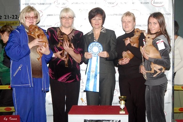 dombus Опубликовано 26 сентября, 2011 Опубликовано 26 сентября, 2011 "ИЗДОМАБУСЯЧИЙ" десант побывал 24-25 сентября 2011 года на выставках в городе Кирове. Экспертизу проводили Краковская и Патрина ( обе из г.Москвы) Мой дл.ш. к-п Царский Подарок из Дома Бус оба дня выигрывал Лучшего Представителя Породы , получил титул Чемпион Федерации и закрыл титул ЧЕМПИОН РОССИИ ! А еще собачки моего разведения учавствовали в конкурсе на "Лучший питомник" и заняли 1-ое место !!! Чему я ОЧЕНЬ РАДА !!!:vinovat: :vinovat: :vinovat: Гл.ш. рыжий Зефир в Шоколаде из Дома Бус тоже меня порадовал - оба дня Лучший Представитель Породы , 2хСАС , Чемпион Федерации ! ОТ ВСЕЙ ДУШИ ПОЗДРАВЛЯЮ его хозяйку ИНЕССУ ВЛАДЫКИНУ ( г.Глазов, Удмуртия) Гл.ш. рыжая Горная Лаванда из Дома Бус дебютировала в промежуточном классе и оба дня - Лучшая Сука , 2хСАС , Чемпион Федерации ! ОТ ВСЕЙ ДУШИ ПОЗДРАВЛЯЮ ее счастливую хозяйку ЯНОЧКУ ПОПОВУ ( г. Березники) Дл.ш. рыже-коричневый Дерзкий Наследник из Дома Бус в классе щенков оба дня - Лучший Щенок ! ОТ ВСЕЙ ДУШИ ПОЗДРАВЛЯЮ его хозяйку ОЛЬГУ НАГОВИЦЫНУ ( г. Глазов , Удмуртия) ДЕВЧОНКИ !!! ОЧЕНЬ РАДА ЗА ВАС И ВАШИХ ПИТОМЦЕВ И В ДАЛЬНЕЙШЕМ ЖЕЛАЮ ТОЛЬКО ПОБЕД !!!