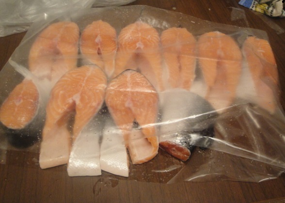 lugaika Опубликовано 22 декабря, 2014 Опубликовано 22 декабря, 2014 Не любитель я замораживать, ни мясо, ни рыбу... а тут наткнулись на такую красавицу! Горбуша вытянула на три с лихвой кило. Лежала на льду прямо серебряная, плотная. В общем, не устояли мы... Подготовила стейки толстые, по 4 см, немного морской солью присолила, и на быструю заморозку. Друзья уже в гости на НГ собрались, мы опять принимающая сторона, муж приедет с трассы сразу к столу, так что, заранее подготовленная рыбка - выход. Ещё к ней планирую запекать помидоры черри на ветке. Просто полью их оливковым маслом, и в духовку. А вот про соус и гарнир к ней не решила... Правда, купила итальянскую лапшу с трюфелями, но у гостей поспрашиваю, чего хотят. На 1 января, муж закупил Боржоми, и заказал солянку... Ну, солянка - обязательный элемент программы, который тоже варится заранее. Все гости всегда сказочно довольны, включая детей! А для хозяйки не так хлопотно. К солянке тесто слоёное припасу, треугольничками нарежу, с утра (читай с обеда) запеку, и аромат выпечки в доме, и возиться долго не надо. Или профитроли. Ещё будут жульены, слои: жареный на сливочном лук, подкопчёная курица (один раз в год можно), маринованные маслята, сыр. Жульены отправятся в духовку без пяти полночь. Как только с ними расправимся, пойдём гулять, хлопушки для детей заготовлены. Как вкусненько будет))))) Тоже что ли жульенчик наделать????Так надо деду морозу для мамы прикупить кокотницы тогда сегодня))))