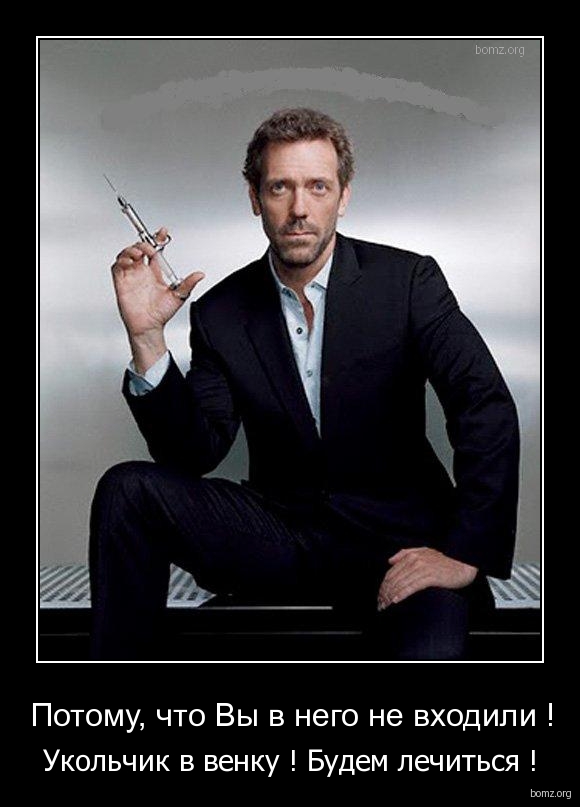 GreyBeard Опубликовано 5 мая, 2011 Опубликовано 5 мая, 2011 ...It's getting heavy I think I'm about ready to break down I'm standing up, but I'm falling down Time keeps on ticking I wish there was a way to slow it down Someone pick me up, Cause I'm falling down I'm falling down, down, down, down, Down, down, down, down I'm falling down, down, down, down, Down, down, down, down... ...Становится всё тяжелее Мне кажется, я скоро сломаюсь Я ещё держусь, но уже не справляюсь Время течёт неумолимо Вот был бы способ замедлить его ход Кто-нибудь, подставьте плечо, Ведь я уже не справляюсь Я не справляюсь, не справляюсь Не справляюсь, не справляюсь Я не справляюсь, не справляюсь Не справляюсь, не справляюсь... Ладно. Продолжаем дальше... 211). - Вам следует спать на левом боку. - Это невозможно! Мой муж говорит во сне а я не слышу левым ухом. 212). В больницу привозят смертельно раненого пациента. Подходит врач и смотрит на часы : - Скорей, скорей, а то у меня через пять минут обед начинается. 213). Доктор: - Надо перед Рождеством навестить всех своих больных. Ассистент: - На кладбище, доктор, пойдете? 214). - Симпозиум врачей. Американцы говорят: - Мы научились делать уникальную операцию: одному мужику глаз выбили, так мы ему деревянный вшили, и он им все видит. Тут русские говорят: - А у нас мужику кое-что оторвало, так мы ему коровье вымя пришили, и он не только пять баб одновременно удовлетворяет, но еще и пять литров молока в день дает! Американцы: - Да? А кто это видел? - А ваш с деревянным глазом! 215). - Почему Вы не пьете лекарства? - Они же противные. - А Вы пейте лекарства и думайте что это коньяк. - Лучше уж я буду пить коньяк и думать что пью лекарства. 216). - Скажите, доктор, обязательно делать эту дорогую операцию? Мне, в конце концов, необходимо содержать жену и моих детей. - Мне тоже уважаемый! 217). Меняю бензопилу на протез. 218). Плакат на автомагистрали: "Водитель! Бойся того места, откуда выскакивают дети!" 219). Девушка выговаривает своему другу - студенту-медику: - Ведь ты прекрасно знаешь, что алкоголь убивает клетки мозга! - Да, убивает, но только слабые и нежизнеспособные! 220). Старый аптекарь оставил молодого ученика, а сам выскочил куда-то. Возвращается и спрашивает: - Кто-то приходил? - Угу, трех пациентов принял. У первого кашель. - Что ты ему дал? - Слабительное... - Идиот! Что с ним? Где он? - Да все в порядке! Вон он стоит, кашлянуть боится! - А второй? - Ноги сломаны. Я ему тоже дал слабительное. На что он на костылях полкоридора прошел, потом костыли бросил - побег куда-то. - Ну а третий? - Девушка противозачаточное просила. Я ей дал два пузырька слабительного и велел принять ей и ему перед тем как, пусть попробуют детей заиметь! Полтора часа - никого.