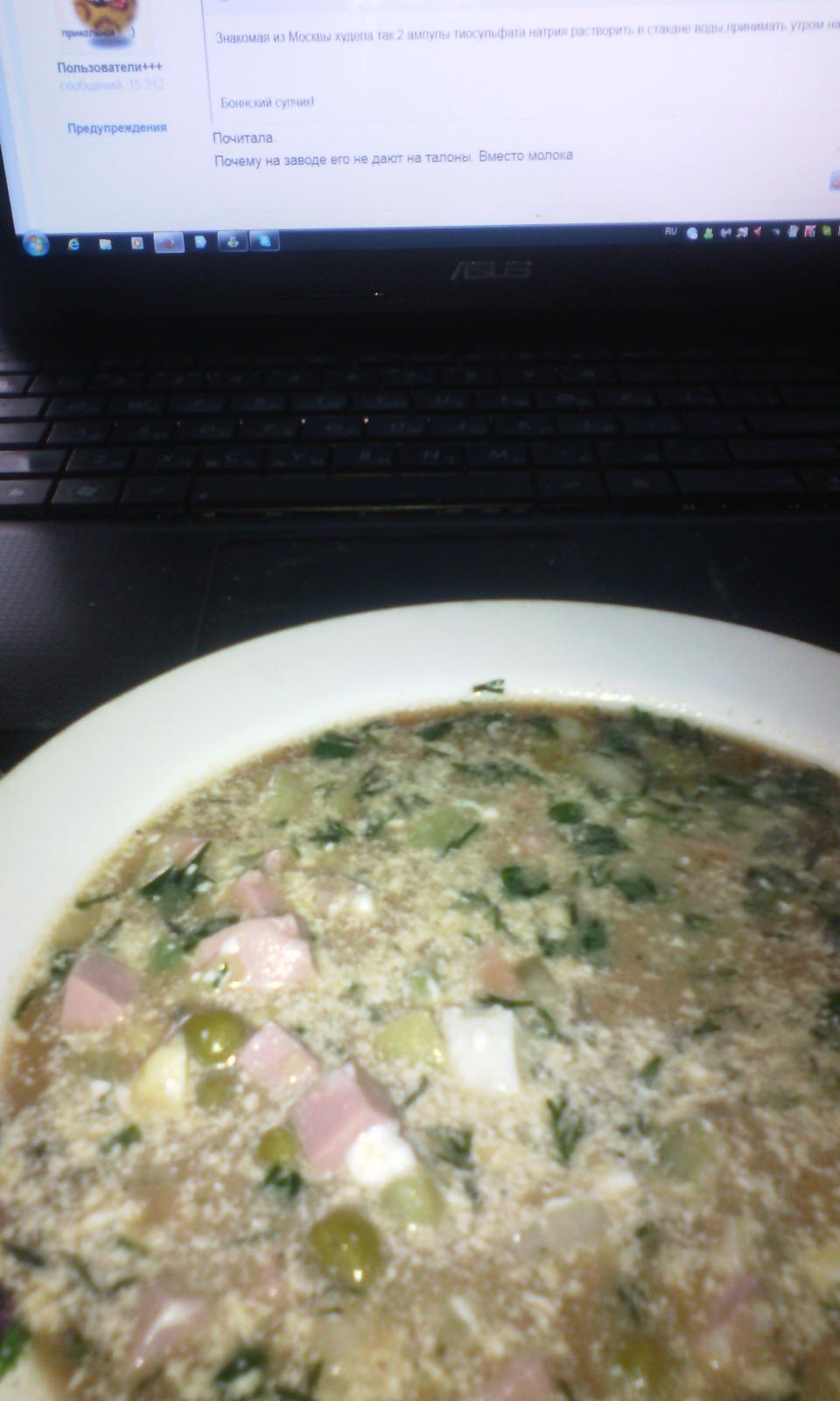 Melissa777 Опубликовано 14 мая, 2014 Автор Опубликовано 14 мая, 2014 Многа многа лука запаривается кипятком, настраивается. Потом ещё немного жидкости, чуть-чуть морковки и соли. Перед выходом в свет заесть чесноком!)))))))))))))