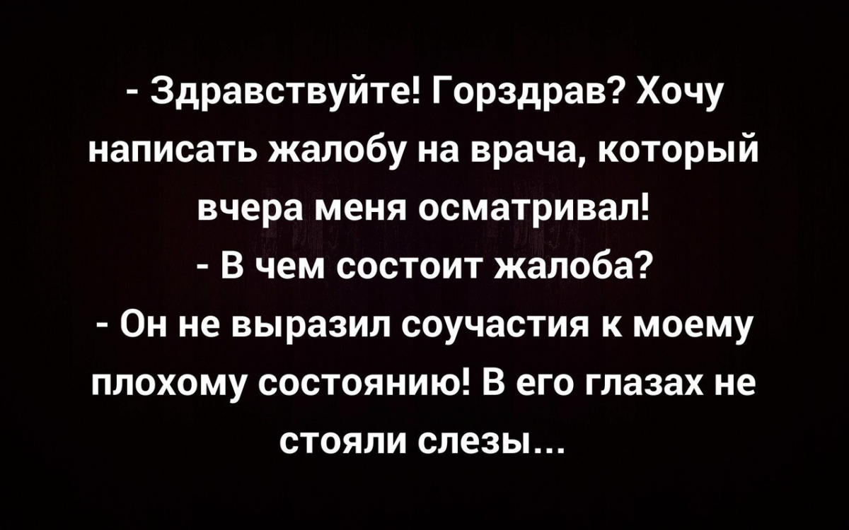 argonaut Опубликовано 3 августа, 2019 Опубликовано 3 августа, 2019 - Доктор, как мне это вылечить?- Сейчас загуглю.- А может я сам?- Вот давайте не будем самолечением заниматься... 1