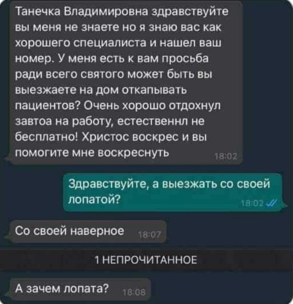 Akon Опубликовано 25 июля, 2022 Опубликовано 25 июля, 2022 (изменено) Индийская сказочка про красную шапочку Однажды, красная шапочка гуляла в Пыскоре шла по картофельному полю и встретила принца на белом коне в белой одежде. Стали они обниматься-прижиматься и просто так бегать по полю. На берегу реки Камы, они мечтали и романтично лежали в стариной деревенской лодочке... Но, неожиданно появляется злой дядька и даёт леща хахалю, отчего у него трескается башка. А злодей тем временем тащит красную шапочку и увозит на лодке в неизвестном направлении. Хахаль с забинтованной головой бежит за ними, падает от беспомощности на колени и тянет ей руку в след, а второй рукой хватаясь за сердце. Конец... кто не понял, маладэц! ) Изменено 25 июля, 2022 пользователем Akon