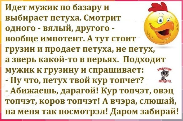 Техрук Опубликовано 7 августа, 2024 Опубликовано 7 августа, 2024 4 часа назад, Румстер сказал: На рынке ... Бабушка каждый день приносит пакетик орешков водителю автобуса. Сначала водителю это нравилось, а через неделю водитель уже смотреть не мог на эти орешки, и он говорит: — Бабуль, не приносите мне больше эти орешки, ешьте их сами. anekdotov.net, — Сынок, да у меня ведь зубов-то нет. Поэтому я только обсасываю шоколад с орешков, а орешки складываю в пакет и приношу тебе.