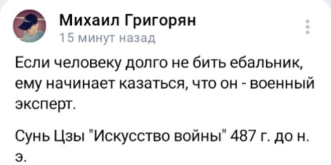 Техрук Опубликовано 16 августа, 2024 Опубликовано 16 августа, 2024 13 минут назад, Караванщик Али сказал: С огнем играешь, Бро. Цитата Всунь Вцзи, похоже, была для тебя)))) Да она переживает из-за своей груди. Шибко маленькая она у нее. А я ей: ну зато у тебя попа ого-го!