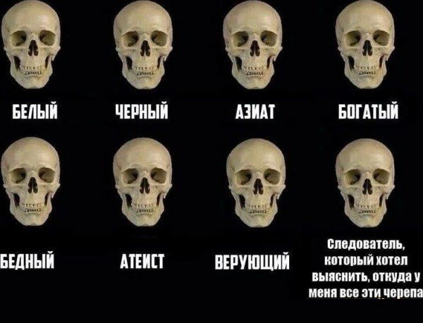 красная шапочка Опубликовано 30 августа, 2024 Опубликовано 30 августа, 2024 23 минуты назад, Техрук сказал: В Парыж? В поликлинику! 1 час назад, Румстер сказал: А это для интересующихся А человек состоит не только из скелета, но и мышц, мозга и в конце-то концов у него есть интеллект! У негров мышцы вообще не такие как у нас! А азиаты думают по-другому, чем мы. Че к черепам-то привязались! Главное не коробка, а что в коробочке лежит! Вот!