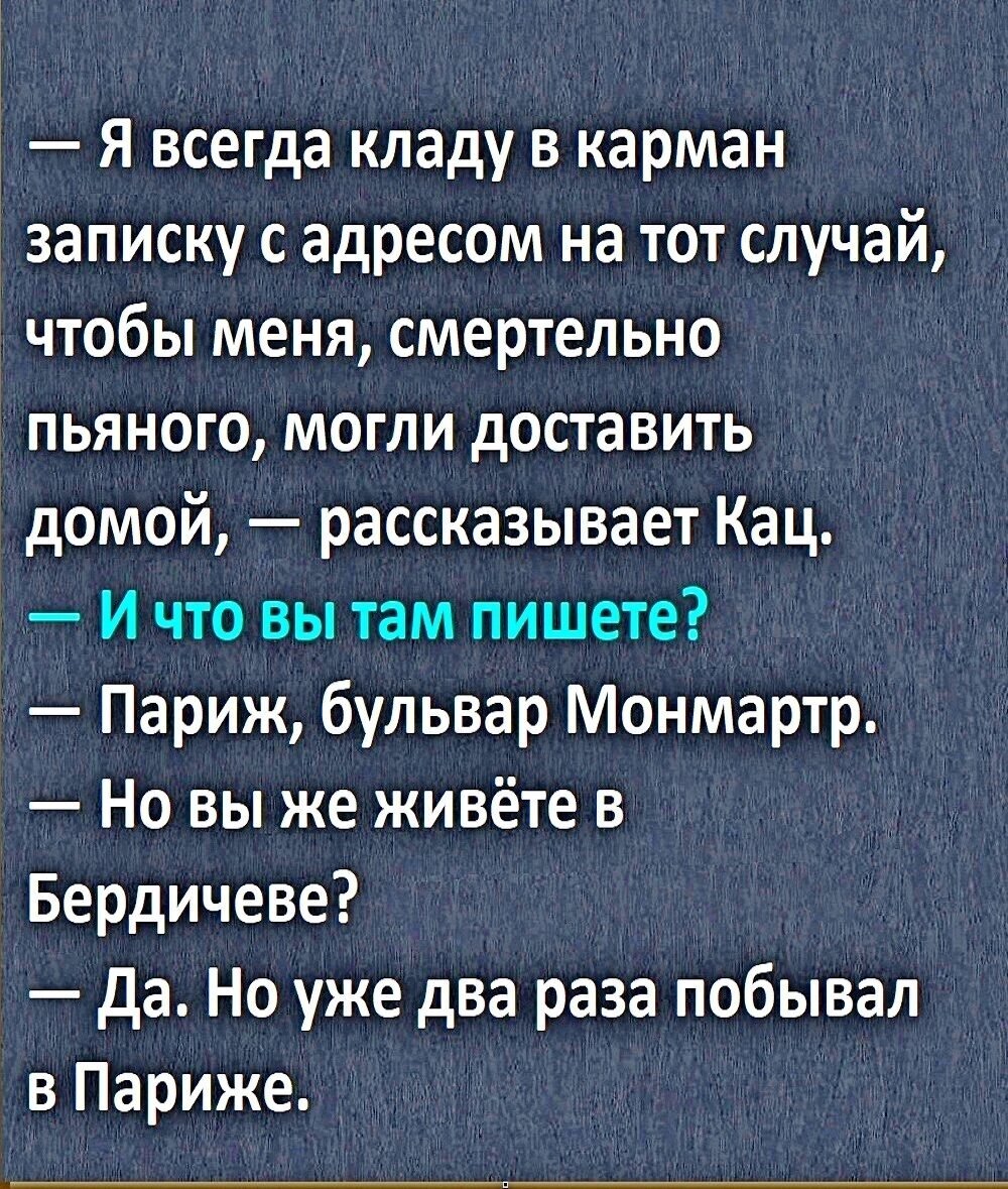 красная шапочка Опубликовано 18 ноября, 2024 Опубликовано 18 ноября, 2024 (изменено) Песнь. Точно брошу вредные привычки, 27 а я все холостой Я решил жениться на медичке, и я точно знаю на какой Чтобы белый халатик обтягивал стан ее стройный Из под белого чепчика русый торчал завиток Колокольчиком нежным звучал ее голос спокойный И конечно, чтоб не было в мире прекраснее ног Точно брошу вредные привычки, 37 а я все холостой Я решил жениться на медичке, и я точно знаю на какой чтобы белый халатик обтягивал стан ее стройный чтобы спину могла помассировать вечером мне чтоб молчала побольше, и чтобы характер спокойный ну а ноги, а ноги любые сгодятся вполне Точно брошу вредные привычки, 50 а я все холостой Я решил жениться на медичке, и я точно знаю на какой чтобы белый халатик украшен был фонендоскопом чтоб меня берегла , измеряла давленье мое чтоб без боли могла уколоть мне и в вену и в попу чтоб не знали усталости нежные руки ее Точно брошу вредные привычки, 60 а я все холостой Я решил жениться на медичке, и я точно знаю на какой чтобы белый..., а впрочем чтоб знала где клизма, где грелка чтобы помнила точно какие лекарства , когда чтоб владела прекрасно нелегким искусством сиделки чтоб умелые руки ее.... ну хотя б иногда … Хочу напомнить всем желающим , сертифицированная медичка все еще не замужем!! Изменено 18 ноября, 2024 пользователем красная шапочка 1