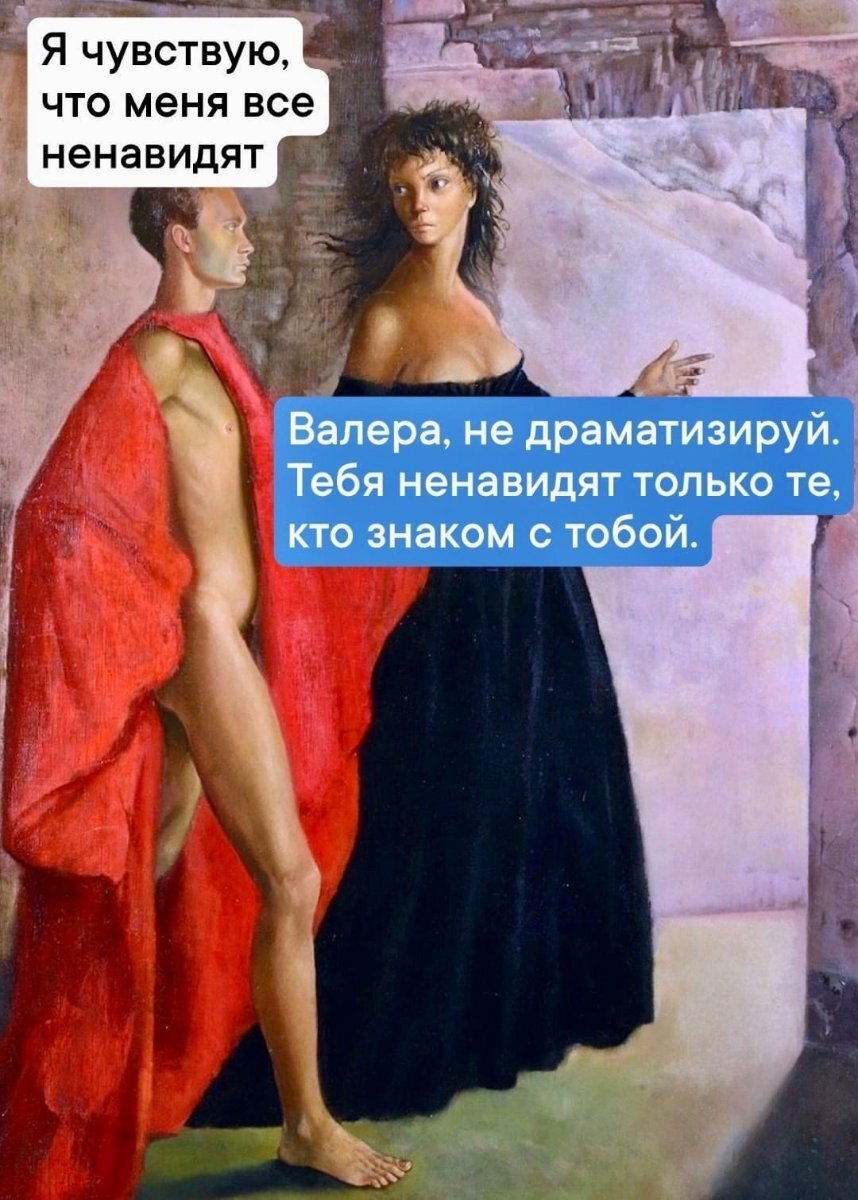 frend Опубликовано 15 апреля Опубликовано 15 апреля 3 часа назад, Караванщик Али сказал: Столица, чай, ишшо не отошла от предыдущего посещения Шапычкой московских злачных мест Свинина закончилась? 2 часа назад, kornet - без пробелов сказал: Во.А меня тоже стих есть. В СЛУЧАЙНОМ СТЫКОВАНИИ С КОРНЕТОМ МГНОВЕННО ШАПОЧКЕ ОТКРЫЛОСЬ ВОТ ОН - НЕПОСТИЖИМЫЙ КОСМОС А НЕКТО АЛИК - СПРЕВШИЙ СИЛОС