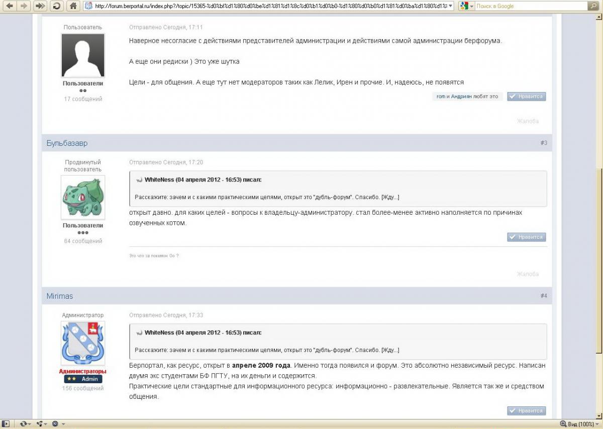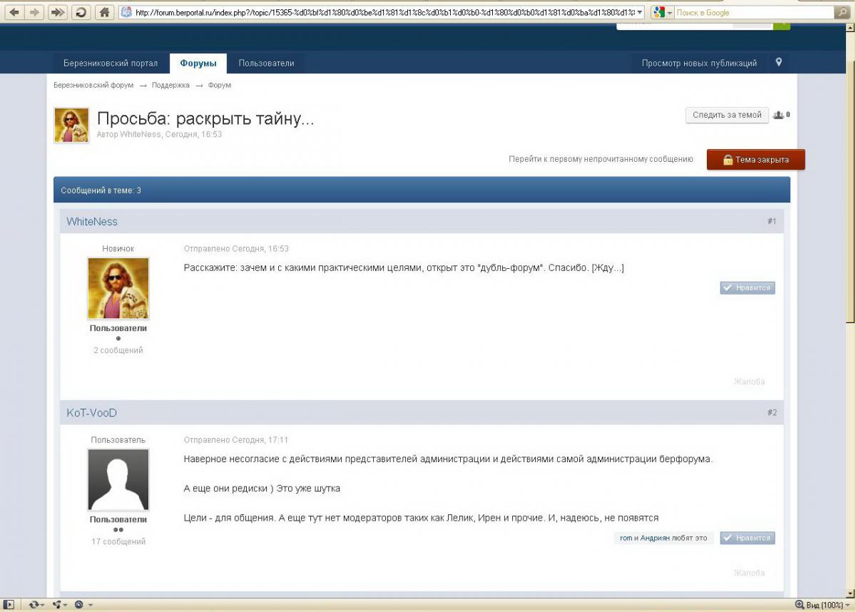 GreyBeard Опубликовано 4 апреля, 2012 Опубликовано 4 апреля, 2012 (изменено) Беда... Сообщение - не получилось... Попробуем ещё разик... Беда... беда... (Враг мешает формированию сообщения... ) Внимание. Получен ответ из ''параллельного мира''... Сразу же закрыта тема, открытая мной (в течение часа...). Не создаю (пока) на БерФоруме - отдельной темы, лишь озвучиваю "технический" ответ на мой вопрос... [в виде скриншотов, конечно...]: Делаю предварительный вывод: Это - просто технический протест''. Особенно порадовала фраза: "...на их деньги и содержится". Ну - ну... (Хотя - я ничего не имею против... [Но, ...тоже хочу денежек - на свой сайтик...]) {Получилось...} Изменено 4 апреля, 2012 пользователем BlackNess