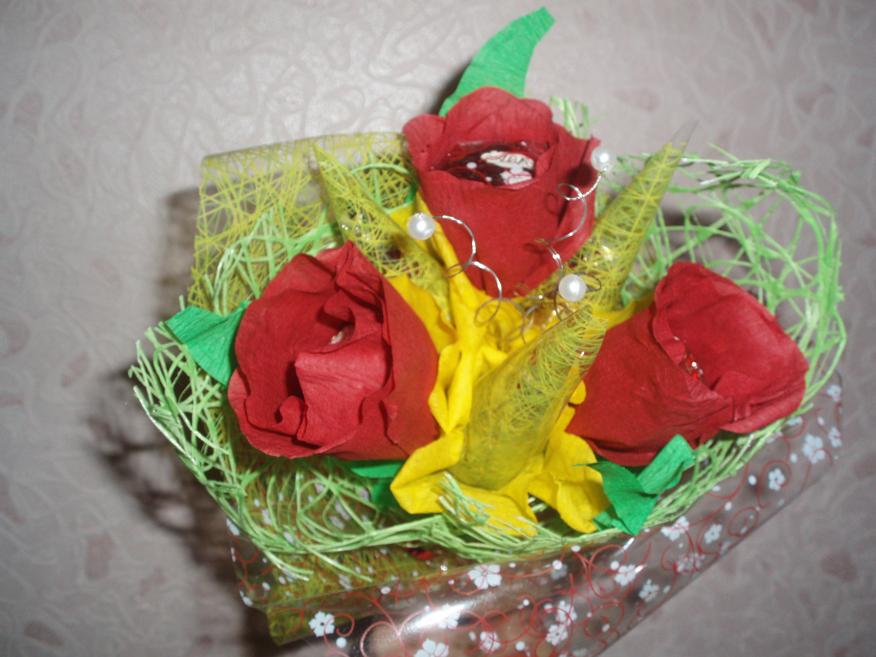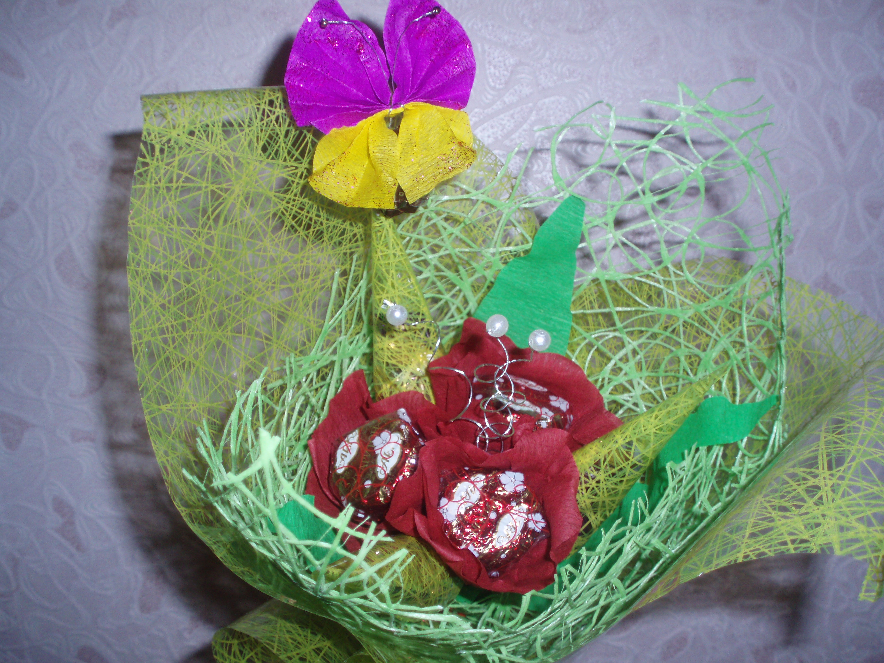 Незабудка Опубликовано 29 августа, 2011 Опубликовано 29 августа, 2011 Букет из конфет... Так, небольшой, всего 6 конфеток. И вот сейчас думаю: 6 - нечетное число... Это раз. Во вторых, бумажные цветы живым, говорят, не дарят))))))))) Как думаете, суеверия сильны в среде воспитателей? Отредактировано Добавила в букетик бабочку) Для нечетного количества. И еще два букетика.
