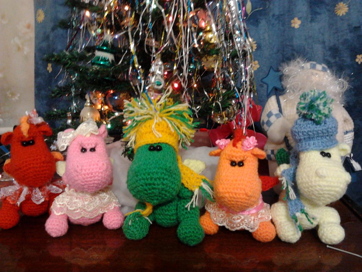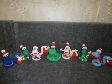 kapryzzzka Опубликовано 24 декабря, 2012 Опубликовано 24 декабря, 2012 Вот выставляю на всеобщее обозрение свои вязалки. Змеючки на подарки родственникам и друзьям. А эти дракончики были раздарены в прошлый год. Этот лось Федор теперь живет у сестры)))