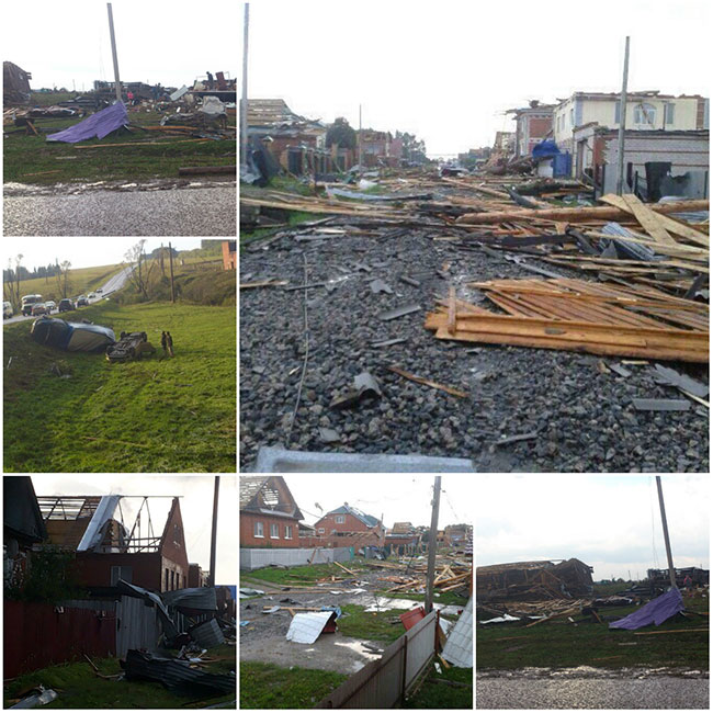dok500 Опубликовано 30 августа, 2014 Опубликовано 30 августа, 2014 (изменено) Кстати, да - какая-то странная гроза, почти беззвучная.. Наверное отблески молний этого торнадо и были видны без звука. Грозовой торнадо, разрушивший в Башкирии дома в Янауле (5 км от границы Пермского края) набедокурил и в Куединском районе. В результате сильнейшей грозы со шквалистым ветром 29 августа (вызов на пульт краевого МЧС в 23.30) произошло отключение электроэнергии в 23 деревнях четырех сельских поселений. Без света остались 2092 частных жилых дома, где живут 7151человек, из них 1780 детей. Уже к полуночи, сообщают спасатели, восстановлено электроснабжение в 20 населенных пунктах Куединского района. Без электричества остаются село Большой Гондыр (1405 жителей, в том числе 351 детей), деревня Барабан (153 человека, 36 детей), деревня Кирга (538 человек, 134 ребенка). Электроэнергию обещают восстановить сегодня до 14.00. Если в Прикамье погибших и пострадавших нет, то в Башкирии торнадо разрушил дома в городе Янауле. Смерч был такой силы, что переворачивал и сносил с дорог машины. На сайте ГИС-центра ПГНИУ говорится о 2 погибших и большом количестве пострадавших. Изменено 30 августа, 2014 пользователем dok500