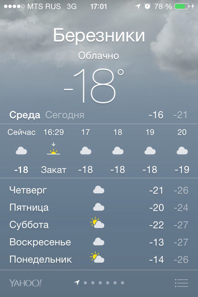 GreyBeard Опубликовано 8 января, 2017 Опубликовано 8 января, 2017 (изменено) :biggrin: Прекрасная погода на 9 января в Березниках на - 09 января 2017: Атмосферные явления. / Температура °C. / Ощущается как °C. / Давлениемм рт. ст. / Скорость ветра м/с. / Влажность воздуха. Ночь / -32° / -40° / 758 / 2.1 / 56% Утро / -32° / -40° / 757 / 2.1 / 57% День / -30° / -38° / 755 / 2.0 / 57% Вечер / -30° / -39° / 753 / 2.7 / 58% Источник. Изменено 8 января, 2017 пользователем BlackNess
