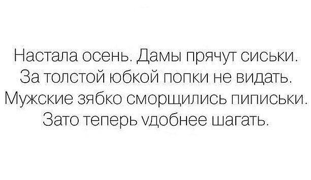 NevidimkA Опубликовано 8 сентября, 2017 Опубликовано 8 сентября, 2017 с дуба рунули? или деньги лишние? нормально дома! Ну, до сегодняшнего дня нормально было, солнышко грело. А сегодня холодно. И на работе тоже. Да и в садиках дети уже с соплями и кашлем ходят. Поэтому - по фиг на деньги, включите о отопление.