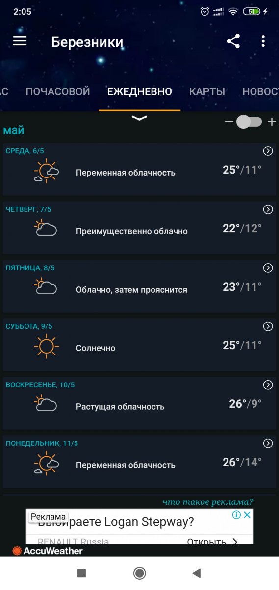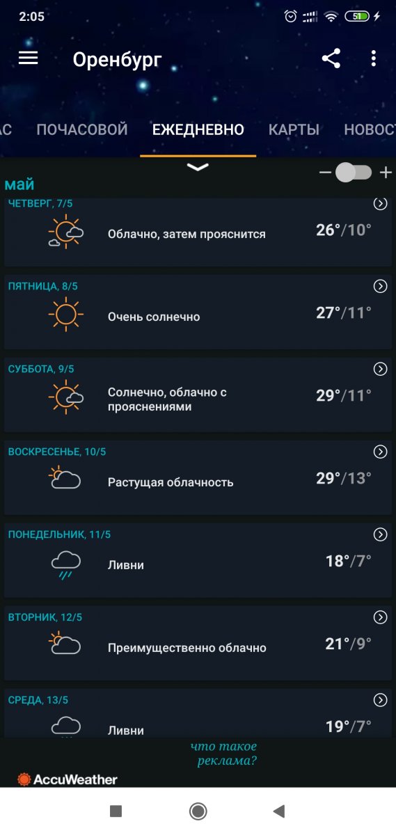 Таргитай Опубликовано 7 мая, 2020 Опубликовано 7 мая, 2020 на праздничные обещают от gismeteo от yandex.ru/pogoda/berezniki 1 минуту назад, ЭлектроНик сказал(а) : Вчера +28 было в тени в 1,5 метрах от стены дома, сейчас +23 показывает, врядли будет больше, чем вчера. Ну облачности больше, дымка какая-то и ветрюган