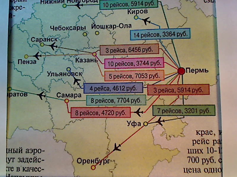 SOLYRIS Опубликовано 13 марта, 2013 Опубликовано 13 марта, 2013 (изменено) Скоро полетаем и внутри края ?. Сейчас в краевом Минтрансе также вынашиваются планы по реанимации внутрирегиональных перевозок. По предварительным прикидкам специалистов, окупаемыми могут быть рейсы из Перми дальностью 300 км и выше. Поэтому в первую очередь рассматриваются возможность полётов до Чайковского, Чернушки, Красновишерска и Гайн. Березники из - за относительно небольшого расстояния пока под вопросом. Приемлимая стоимость билета не должна превышать затраты на бензин при поездке на автомобиле по тому же маршруту. То есть должна быть в пределах 500 - 700 руб. Посмотрели пять аэродромных точек в крае, исходили из расчёта: рейс в сутки на небольших 10 - 12 - местных самолётах, 700 рублей с пассажира. При этом цена одного билета при загрузке авиасудна на 70 % получается 4 тысячи рублей. Следовательно, 3300 руб , за каждый билет надо будет субсидировать из бюджета. В целом это составит 80 % затрат. Считают , стоит попробовать проработать сезон в таком режиме, и уже дальше смотреть. Всё может заработать, если воздух станет альтернативой дорогам .Убеждён Владимир Митюшников. В другие города ПФО вопрос уже решён, при этом оплачивая половину стоимости билета. Рейсы из Большого Савино. ( количество рейсов в неделю, предельная стоимость билета для пассажира ).С 1 апреля по 30 ноября. АИФ ПРИКАМЬЕ № 11, 13 марта 2013г. стр 11. Изменено 13 марта, 2013 пользователем AMOS