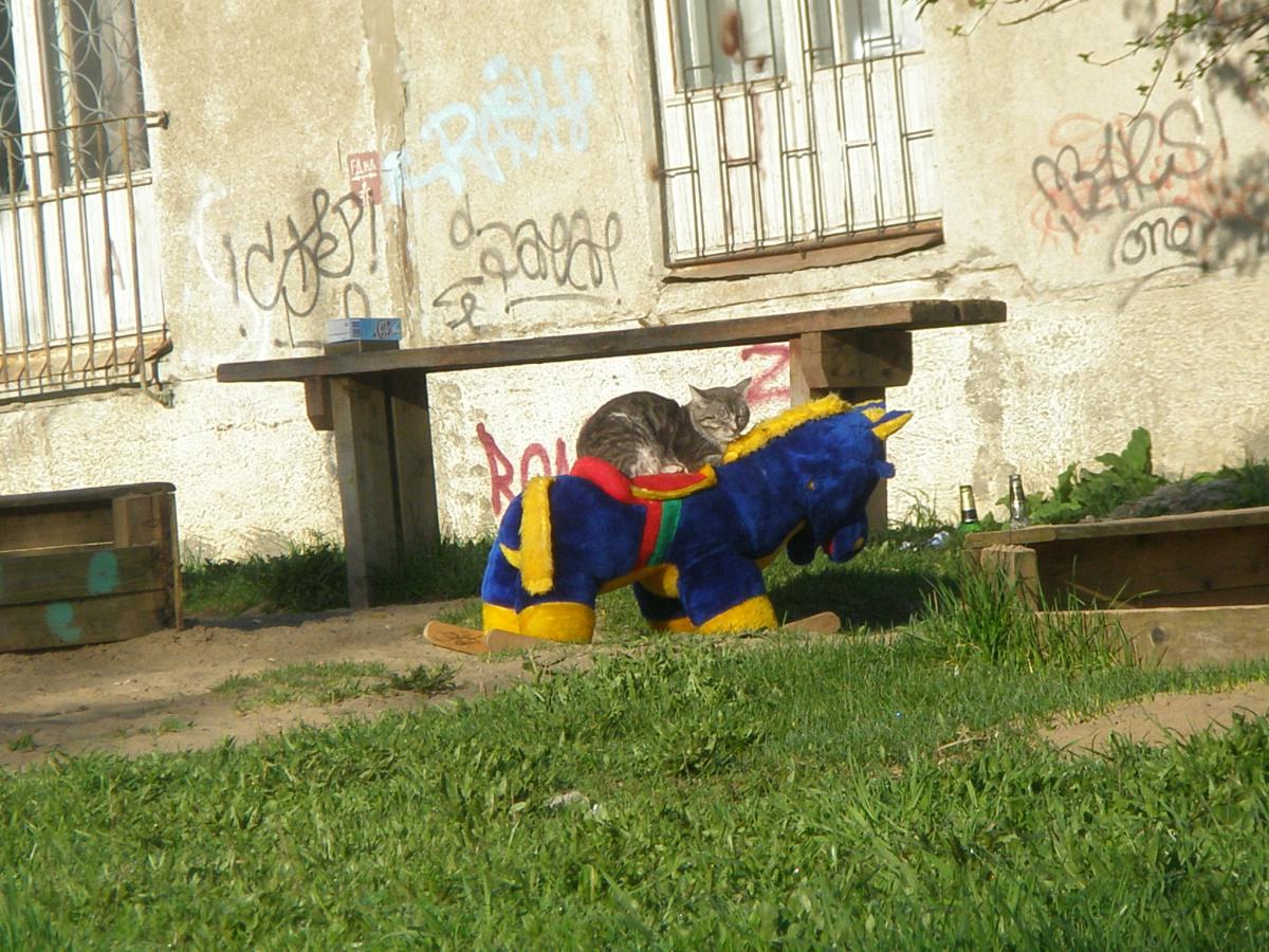 phantomAC Опубликовано 11 июля, 2013 Опубликовано 11 июля, 2013 Утро. Кто - то на детской площадке вечером забыл коняшку -- кому - то на ночь пригодилась )))