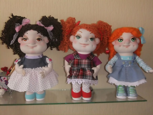 Жабочка Опубликовано 11 января, 2014 Опубликовано 11 января, 2014 Да, красота, эти куклы из капрона? Наряды для них сами шьёте, а обувь? Вот бы моей дочери на это превращение посмотреть, как раз такой возраст, любит мастерить сама. А глазки, где заказываете? Или это пластиковая лепка? Куклы не из капрона,а из трикотажной ткани. Глазки,это пуговицы,которые долго обрабатываются.Все остальное - одежда,обувь,все делаю сама,в ручную. Куклы безкаркасные,то есть внутри нет проволоки,стоят самостоятельно. Все пальчкики на ручках пришиваются отдельно,в ручную. Работа не из легких,но приносит удовольствие.