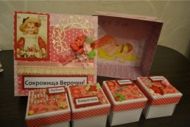 ЖОРКА Опубликовано 13 марта, 2015 Опубликовано 13 марта, 2015 Я занимаюсь скрапбукингом и очень люблю делать коробочки " Мамины сокровища "для хранения милых и дорогих сердцу вещичек <br />