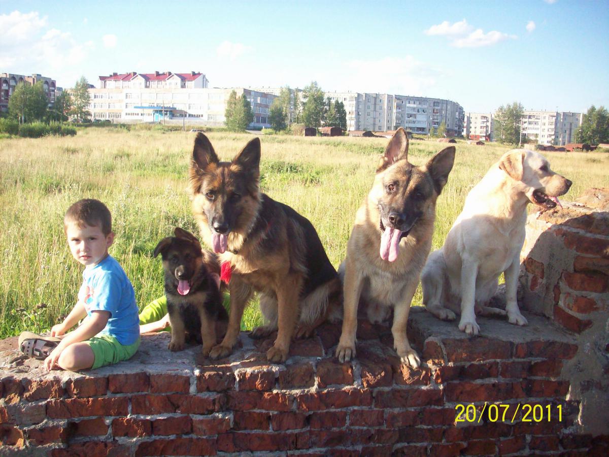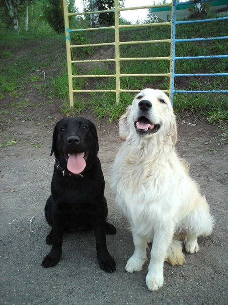 да у нас 2 пацана,немцу 4 года,лабру 2,живут мирно,немец лабрика с детство воспитывает и соответственно в паре главный,конфликты бывают когда они на долго расстаются-неделя и больше! при встречи начинают шерсть дыбить и рычать,как будто первый раз видят друг друга!но команда Нельзя и корекция поводком их быстро успокаивает,тут же лежат рядом как ни в чем не бывало,пару раз бывали драки из за игрушки на прогулке,но Скиф сразу уступает Чезару,исключением может быть только если Чез Скифа серьезно прикусит,тогда лабрадор в долгу не остается и дерется на равных! приходится применять физическую силу,но такое было только раз