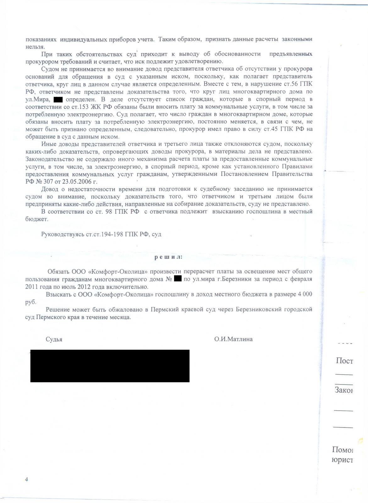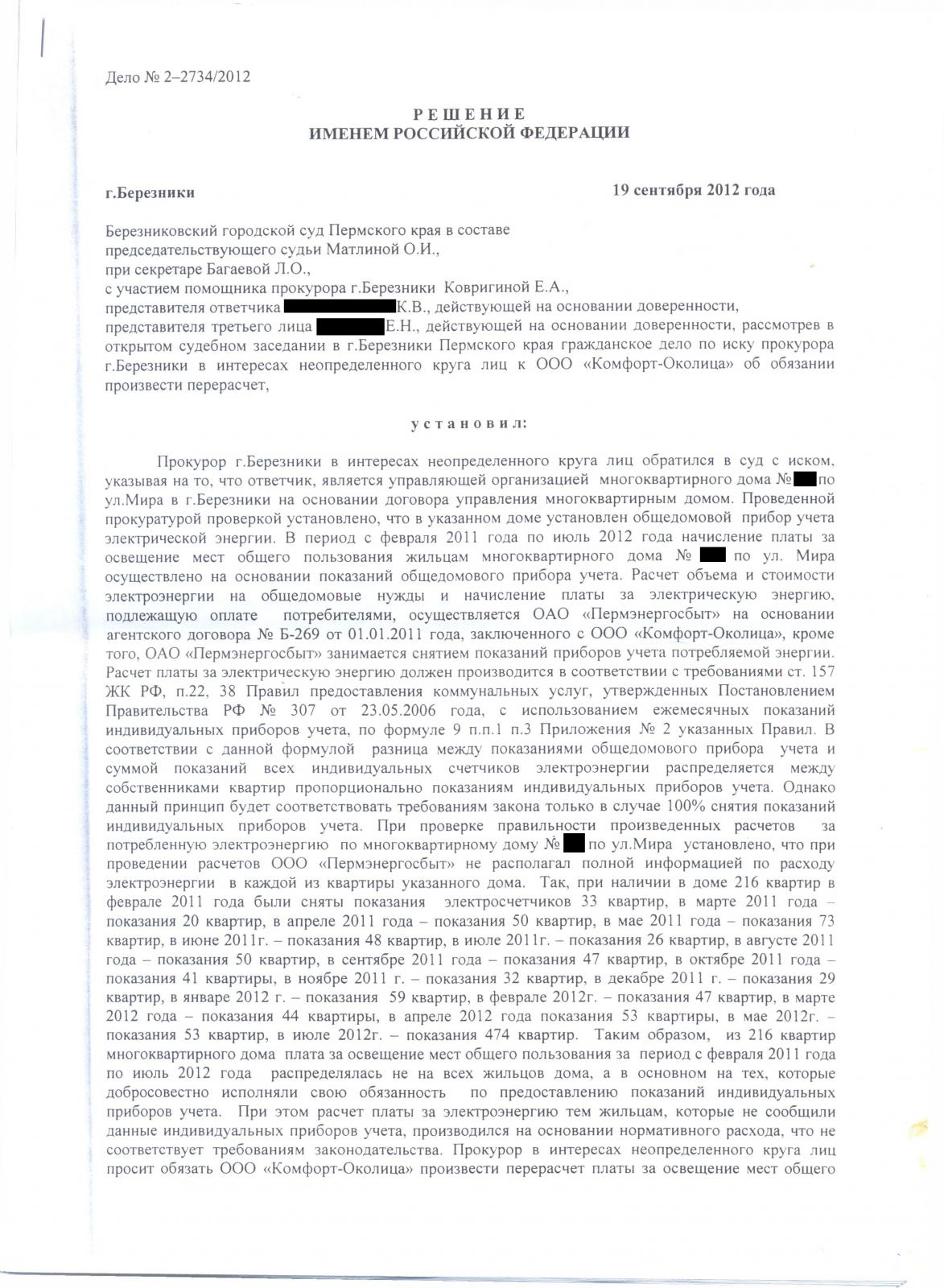 ilaidens Опубликовано 1 февраля, 2013 Опубликовано 1 февраля, 2013 В каком суде слушалось, где искать решение суда? Рассматривал Березниковский городской суд http://berezn.perm.sudrf.ru/modules.php?name=sud_delo&srv_num=2&name_op=case&case_id=30339&delo_id=1540005, правда текст решения почему-то не прикреплен, выложу скан позже. Апелляционное определение Пермского краевого суда http://oblsud.perm.sudrf.ru/modules.php?name=sud_delo&srv_num=1&name_op=doc&number=814092&delo_id=5&text_number=1 на решение БГС по жалобе ответчика.