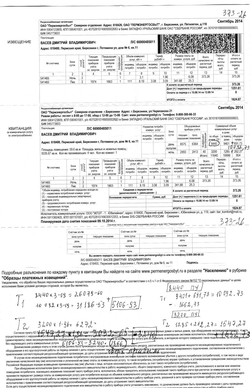 Лариса Васева Опубликовано 1 октября, 2014 Опубликовано 1 октября, 2014 получили квитанции за сентябрь по дневному 8440 квт для оплаты в помещениях дома 9401+ 691.73 ОДН---8440 х3-09 =26079-60 при их нем начислении 9401 + 691.73 = 10092 х 3-09 =31186-53 сверх 5106 руб93 коп. А теперь ночной= по ОДПУ 3200 квт на сумму 6272 руб. в квитанции помещения 1285 + 262,27 ОДН итого 1547.27 квт на сумму 3032-65 а надо 6272 руб из них вычтем начисленные 3032 руб.65коп разница 3239руб35коп получается ночных не доначислили но при этом дневного начислено на 5106руб 93коп.больше и из этого вычесть 3239руб 35 коп то получается наш дом вернее с нашего дома поимели лишних с ОДН 1867руб.58коп. т.е. дом в сентябре переплатит 1867-58 и так каждый месяц в пределах 2000 руб каждый дом в городе переплачивает если 5 этажей 8 подъездов и так на перэнергосбыт дурит набивая себе карманы, возьми и посчитайте у себя на домах. вот такие расчеты отправила депутитам законодательного собрания и в Роспотребнадзор. вообще то они должны с октября сторнировать эту сумму а разницу раскидать на одн но этого никогда не делается и по-этому Пермэнергосбыт получает сверх прибыль мошенническим путем, ссылаясь что нет закона на разбивку ночного и дневного так как не укаждого 2-х тарифный счетчик