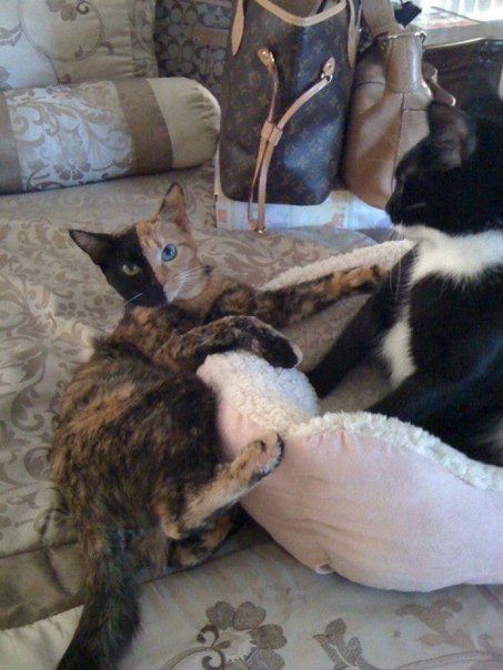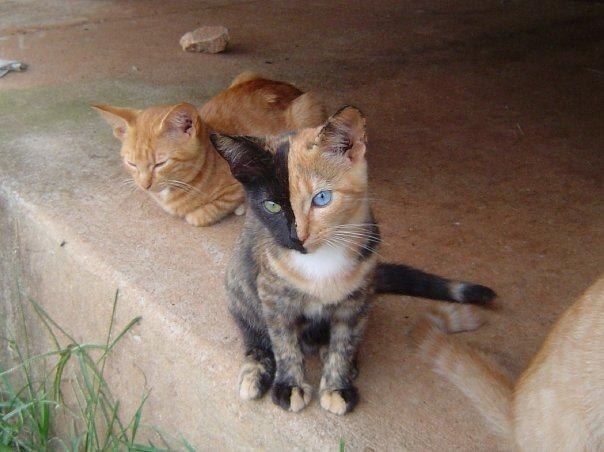 Prosto_Katrin Опубликовано 28 августа, 2012 Опубликовано 28 августа, 2012 Двуликая кошка Эту кошку зовут Венера (Venus), она является удивительным созданием. Ее мордочка наполовину рыжая с голубым глазом и на половину черная с оранжевым глазом. Биологи называют таких химерами, в организме соединены два и более генетических признака. У Венеры есть своя страничка на Фейсбук, которую неделю назад завела ее хозяйка, чтоб рассказать о своей необычной питомице. И за это время эта страничка набрала уже 12 тысяч поклонников.