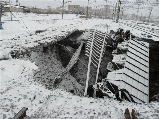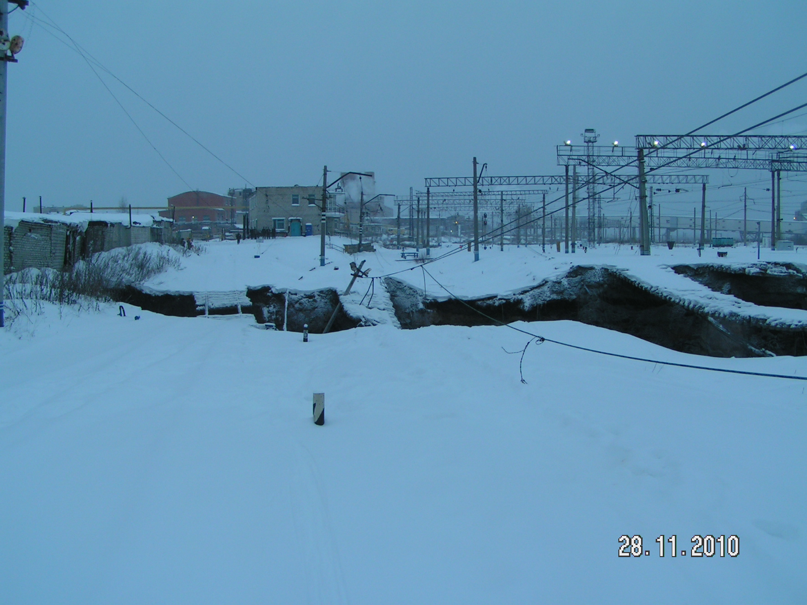 RockF Опубликовано 30 ноября, 2010 Опубликовано 30 ноября, 2010 30 ноября 2010 Новости / Главное в Перми Добавить в LiveJournal Провал в Пермском крае достиг размеров футбольного поля Размер провала увеличивается и составляет уже 100 на 40 метров. Полностью выведена из строя нечетная половина станции Березники. На станции проводится дополнительный осмотр зданий, железнодорожных путей, объектов электрификации и энергоснабжения с целью прогнозирования дальнейшего развития событий. В безопасной зоне начались работы по демонтажу устройств СЦБ, энергетики, связи, верхнего строения пути. Вокруг станции выставлено оцепление, сообщает служба корпоративных коммуникаций Свердловской железной дороги — филиала ОАО «РЖД». Ученые называют несколько причин оседания грунта, одна из них — карстовый провал. В районе проседания грунта были пробурены контрольные скважины для отбора проб керна, анализ которых позволит сделать более точные выводы о причинах аварии. Напомним, провал произошел 25 ноября недалеко от вокзала Березников после прохождения грузового поезда. Утром 28 ноября зафиксировано резкое развитие провала. Были выведены из строя кабельные магистрали сигнализации, централизации и связи, 4 опоры контактной сети, 3 стрелочных перевода и первый путь грузового парка. http://prm.ru/perm/2010-11-30/99724 Дак всё-таки, какой реальный размер? Везде данные разные. Какие из них реальные??