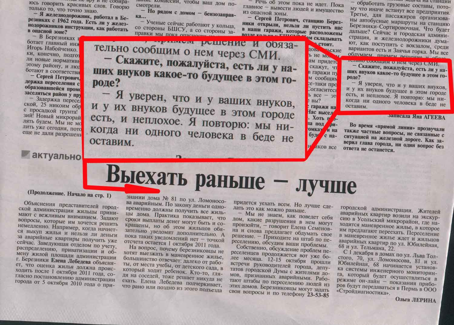 Ценю мнение Salter, спасибо, уважаемый И. В., что не оставляете своим вниманием Березники. Хотелось бы узнать более развернуто Ваш прогноз, если это возможно, что ждет город и его жителей.