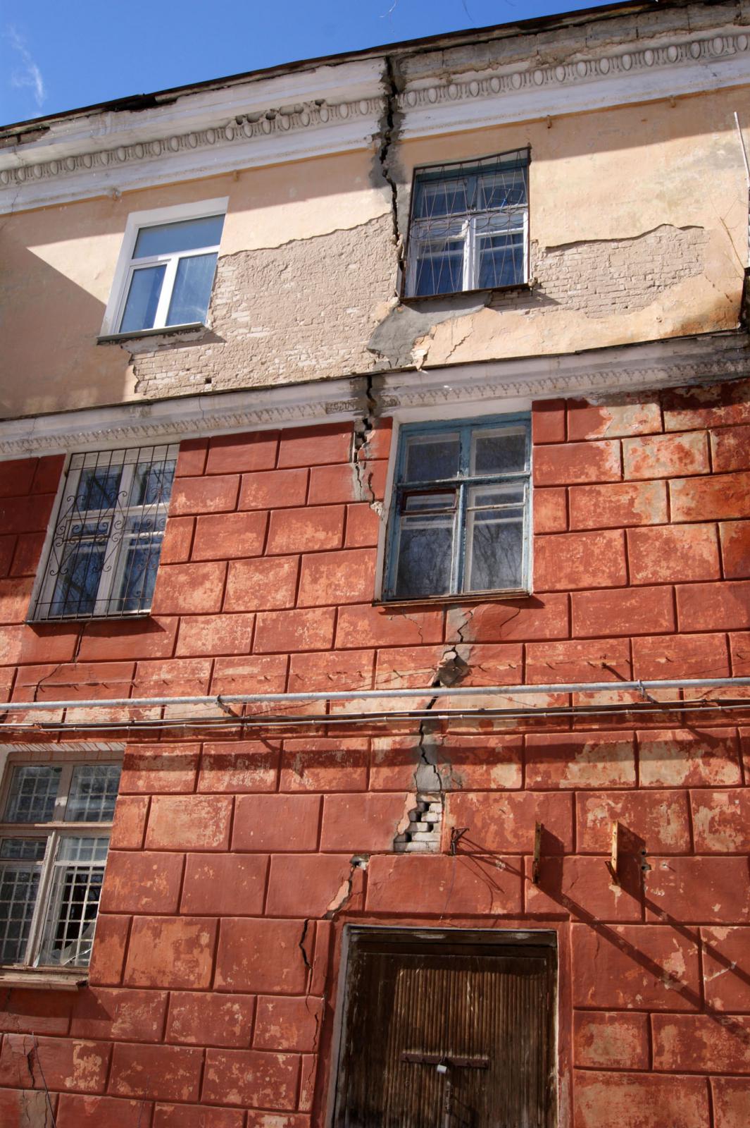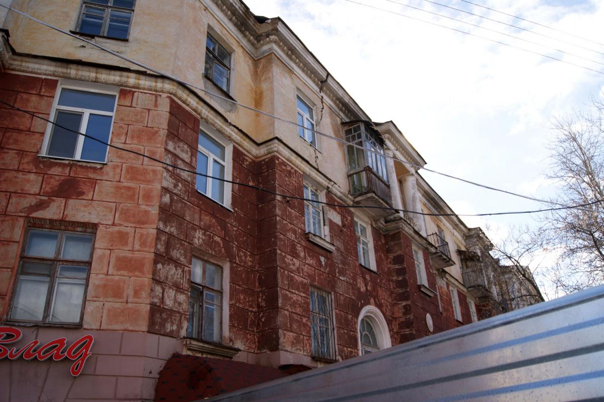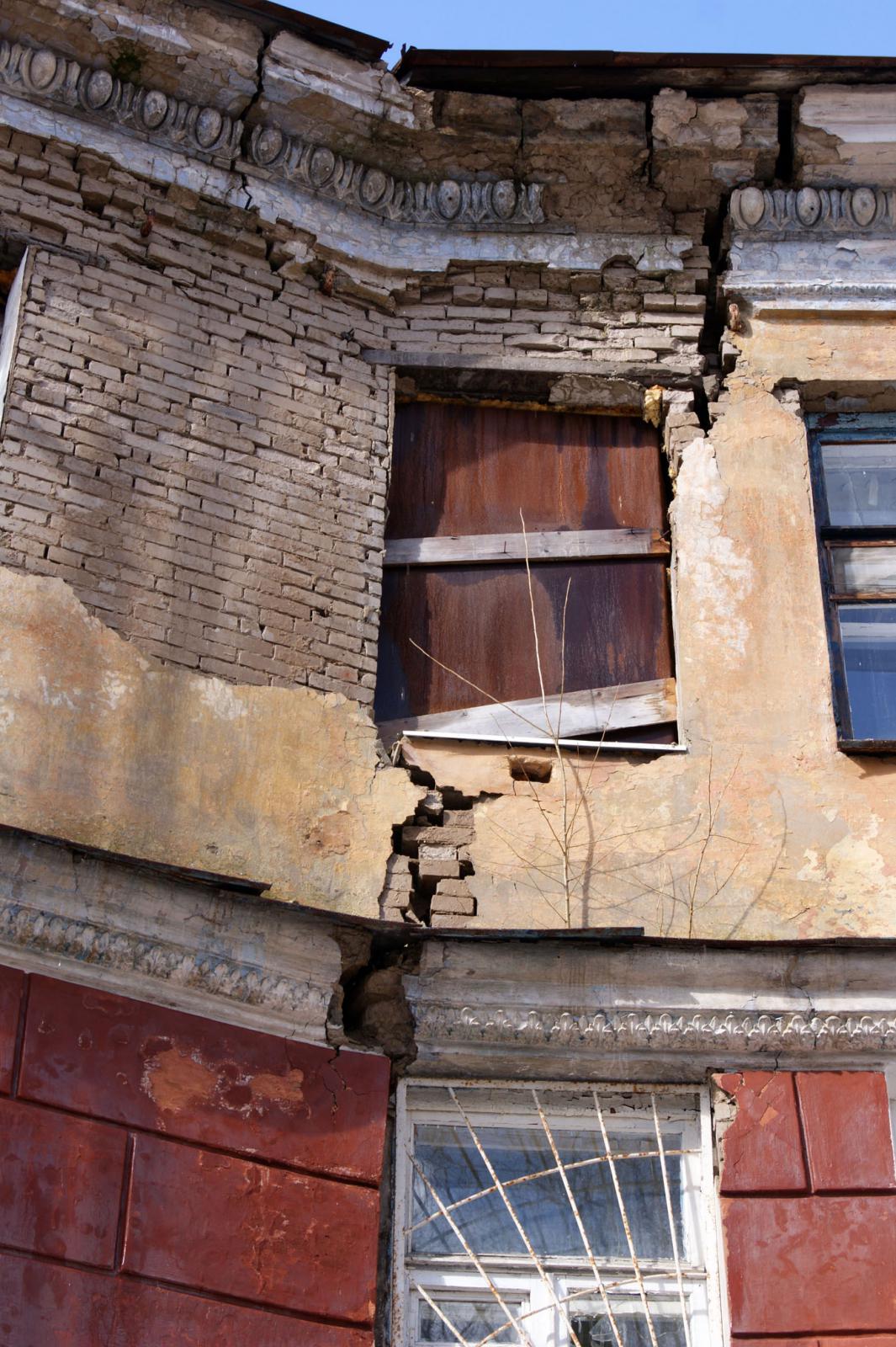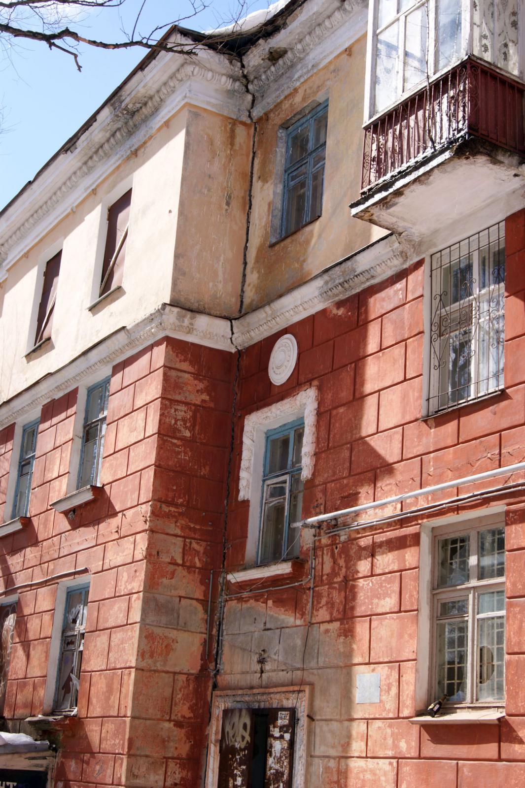 На Ленина 45, как раз на тротуар отвалилась лепнина, огромный такой кусок. По всему Советскому проспекту по четной стороне страшно ходить, постоянно фасад обваливается.