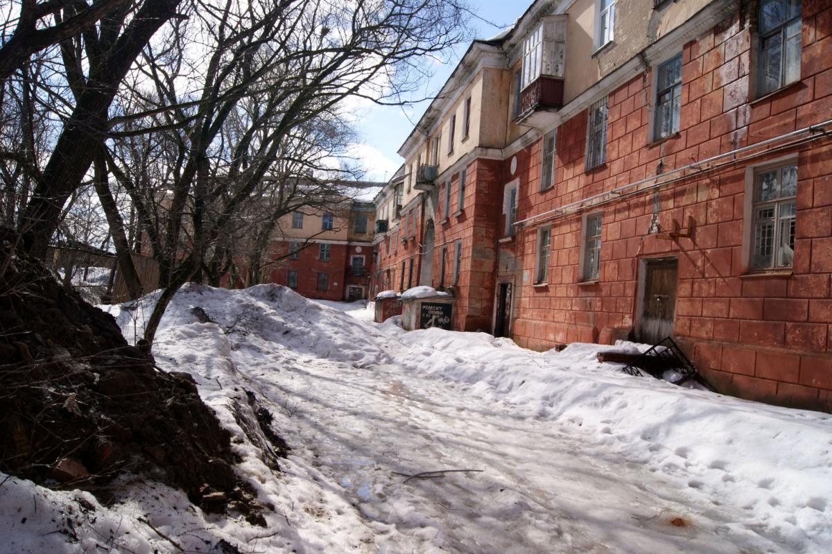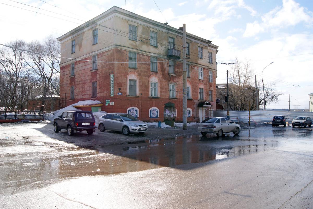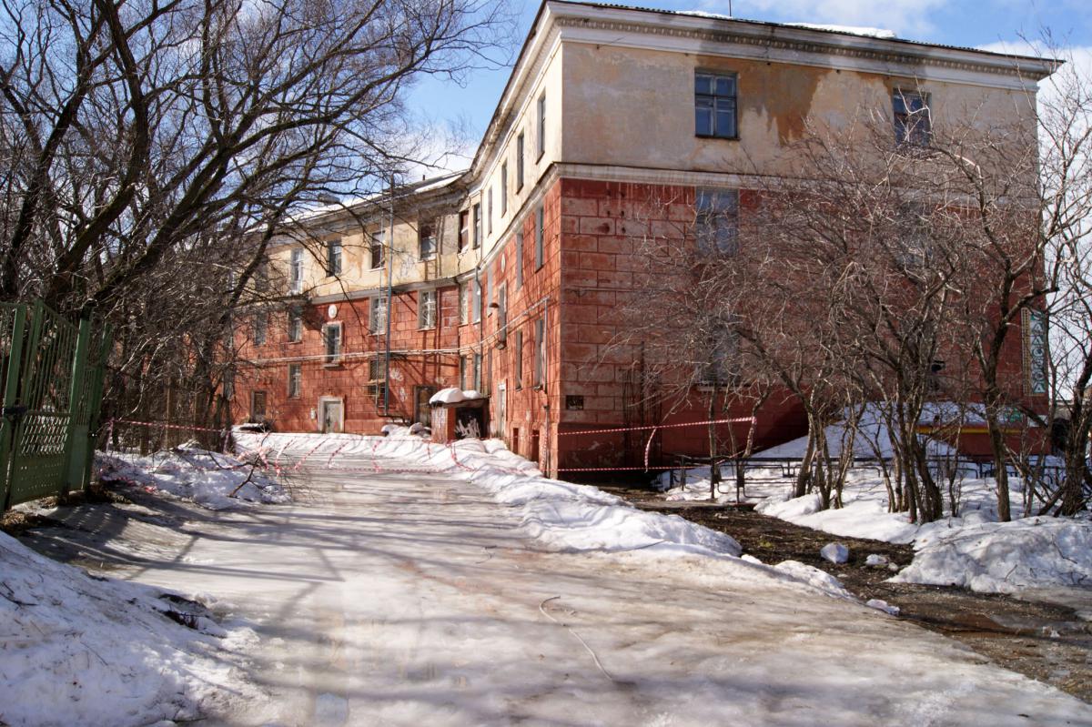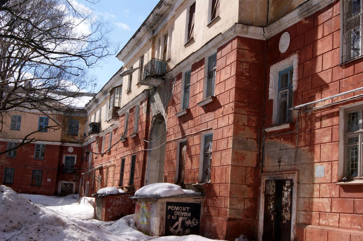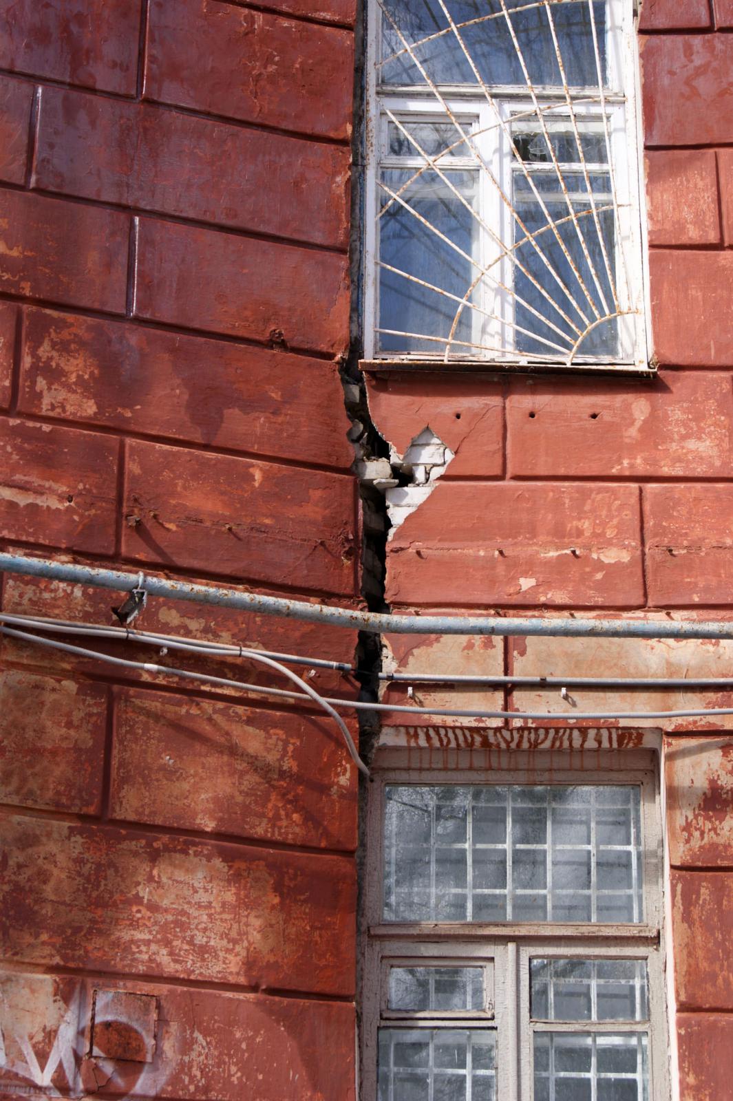 На Ленина 45, как раз на тротуар отвалилась лепнина, огромный такой кусок. По всему Советскому проспекту по четной стороне страшно ходить, постоянно фасад обваливается.