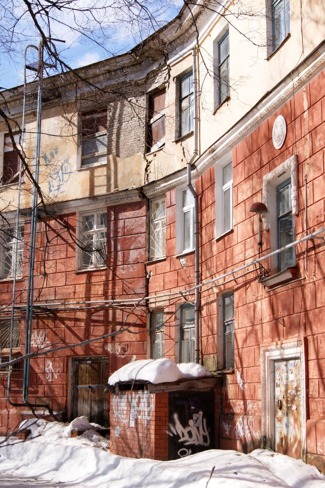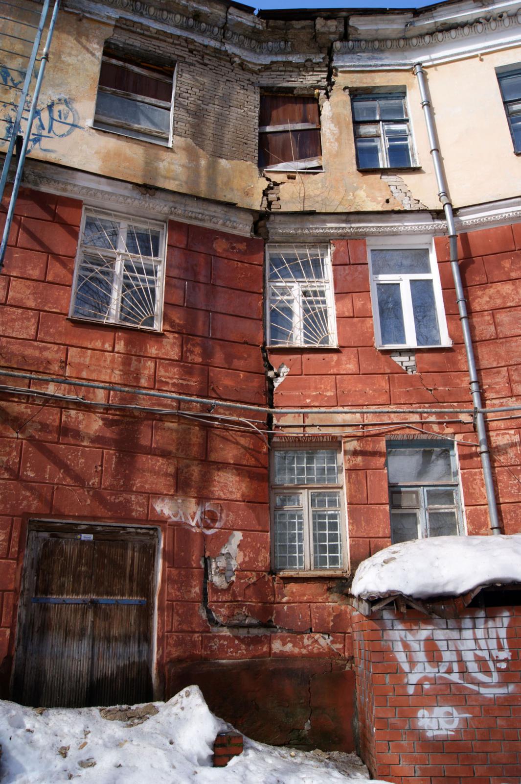 Возле первого давно не хожу - страшновато, с фасада отпадает лепнина и известка большими пластами. Если пройти там летом - весь тротуар усыпан этими обломками