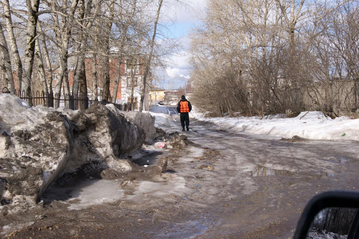 Проезд транспорта не запрещен со стороны рудника, там знака нет - вот и гоняют! У нас по городу тротуары вообще в последнее время не чистят - сплошные лужи, грязь и каша, но как то мысль ходить по дороге - там луж и грязи меньше - не приходила в голову!