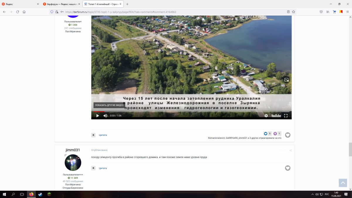 jimm031 Опубликовано 13 августа, 2021 Опубликовано 13 августа, 2021 походу эпицентр прогиба в районе сгоревшего домика. и там похоже земля ниже уровня пруда