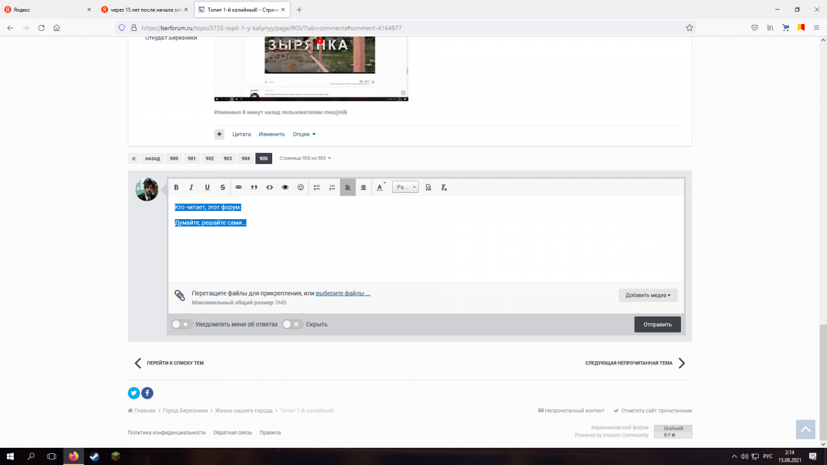 jimm031 Опубликовано 14 августа, 2021 Опубликовано 14 августа, 2021 5 минут назад, mex@nik сказал(а) : И кто вам такой текст дал? это официальный текст из марта-апреля, когда решили расселять прогиб. Ищи в этой теме. В следующий раз, когда соберёшься кого-то ловить на словах, готовься тщательней... а пей меньше. 1