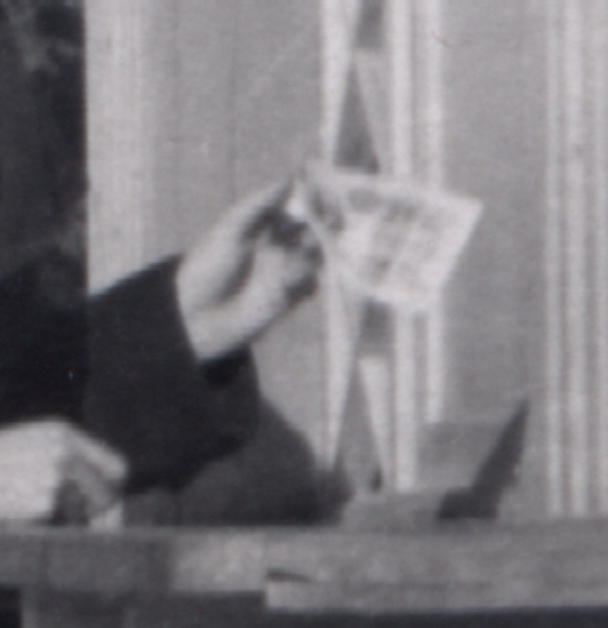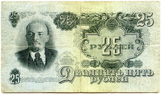 А по предмету, который в руках у мужчины - всё-таки это банкнота. Посмотрите на фрагменте, отсканированном с max разрешением. И сравните с изображением 25-ти рублёвой банкноты образца 1947 года. Ведь есть сходство? Но конечно же, это только мои догадки.