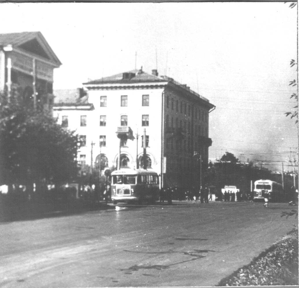 Сейчас вдарим по одному месту - перекресток Пятилетки - Ленина. Вторая половина 50-х. Что там у нас вместо аптеки было в те годы? :) Самое непонятное то, что на одной фотке вокруг Ленина 41 стоит забор... :lol: Зачем???