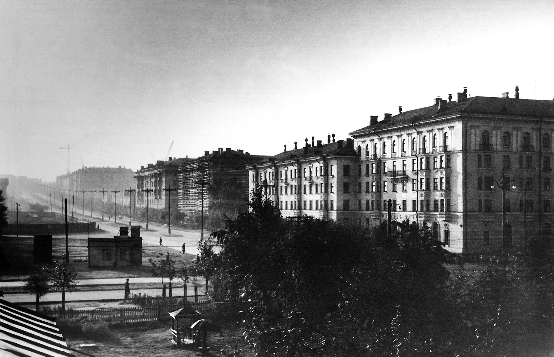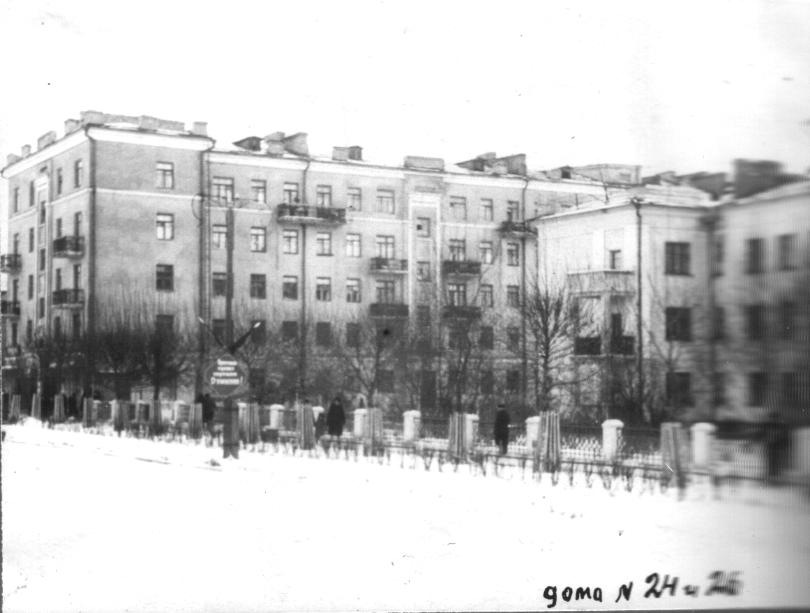 У меня такая - дома 14 и 16 построены в 1955 - сейчас у них последняя стадия отделки. БХМТ - 1953. Медучилище пока неточно - с 1955 по 1960... Строятся на средней стадии 18 и 20 - 1956 и 1957. Постороен 22 - 1953 год. И вроде 24 - тоже 1953. СовПрос26/Ленина 43 - 1956. Вроде так... Итого - 1955-1956...