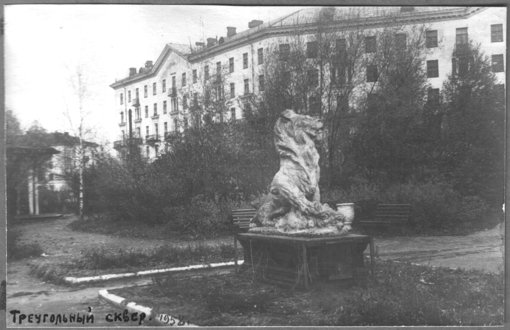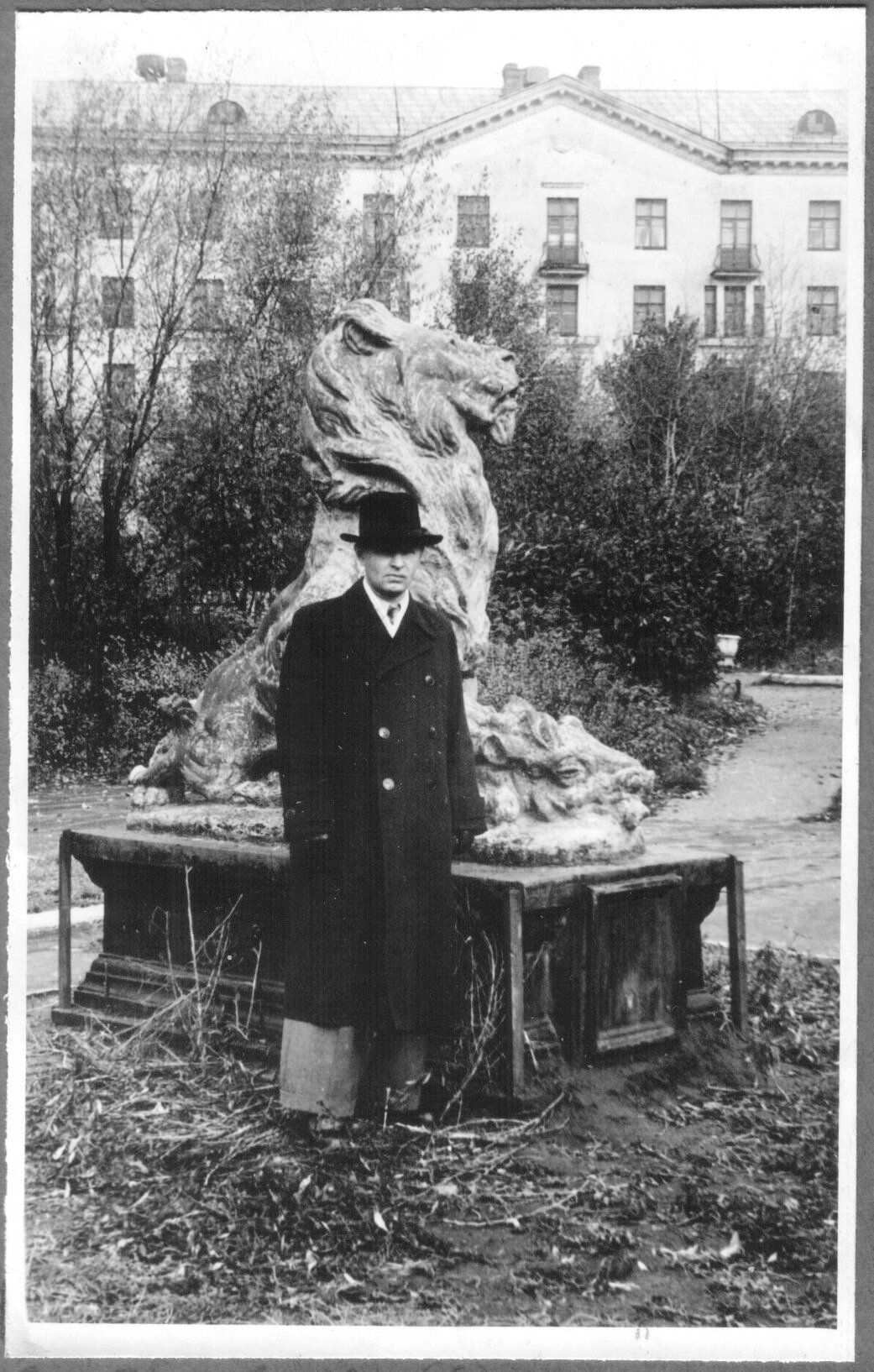 Лев во всей красе - странный постамент, подобие иконы в окладе и раме в качестве украшения... 2 фотки 1958 года. И хоть на последней дата не написана, но положение стеблей травы у постамента говорит о том, что снимки сделаны в односезонно.