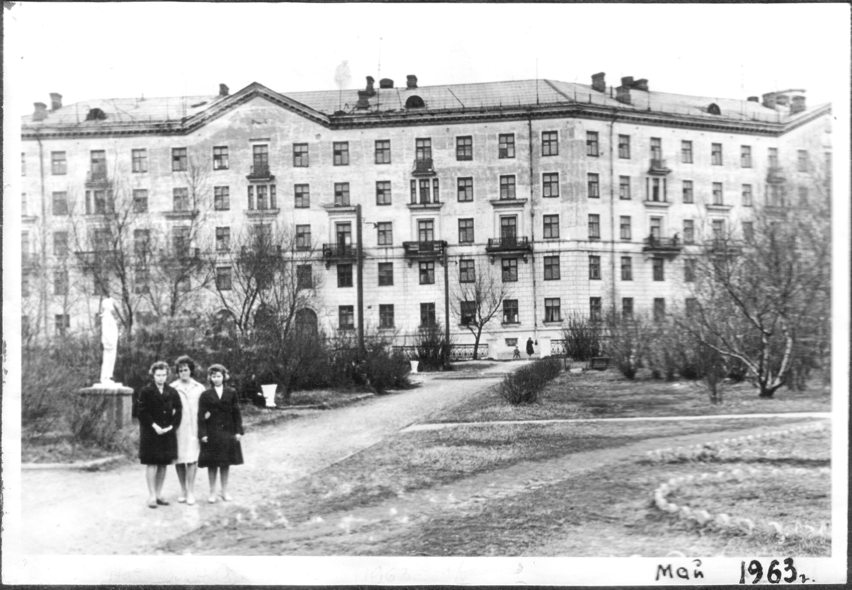 Далее - девчата, стоящие на аллее на фоне ПИОНЭРА у входа со среднего угла дома 43 пятью годами позже. А на фото со Львом эта аллея не просматривается. ](*,) Перекроили за это время...