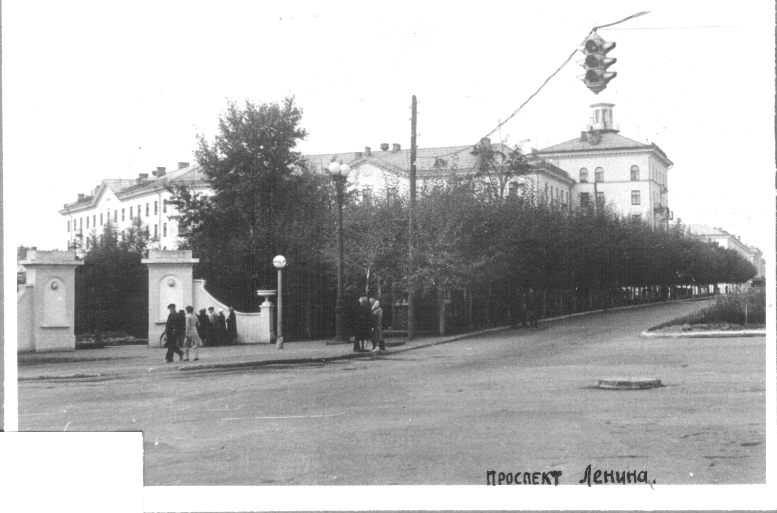 Перекресток Ленина&Сталина... 1958 или позже (построен дом 45) Посреди перекрестка "пятак регулировщика" или колодец? Но раз под светофором, то скорей пятак...