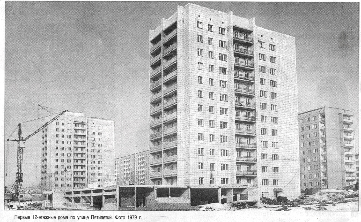 Правда, сняты все эти фотографии явно не в один год, как утверждают подписи. На предыдущем фото от 112-го дома только первый этаж, а тут уже он целиком и асфальт кладут :lol: Похоже, 79й взят с потолка.