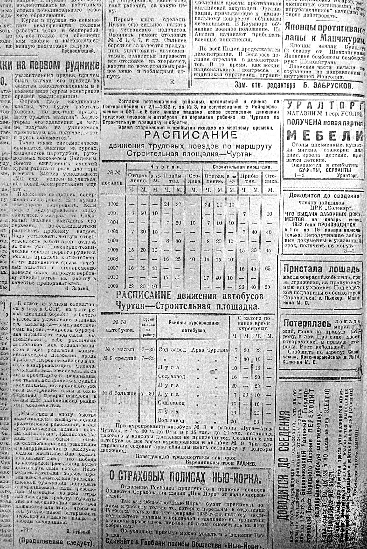1. Запрет движения коняшек и легковушек по Чуртанскому шоссе. Ударник 30 января 1930 года