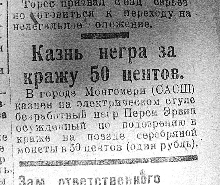 И заметка, которая меня опечалила - Убили негра... Ни за грош... Расисты!!! =D> Газета Ударник 15 марта 1932 года