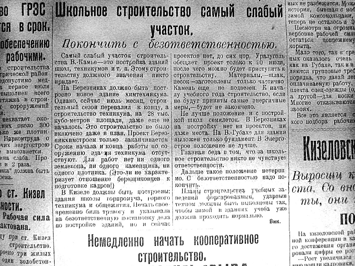 А вот ещё такая заметка, связанная со строительством ПТУ-8 и школ. Гляньте, как на писано - НА Березниках и В Березниках.