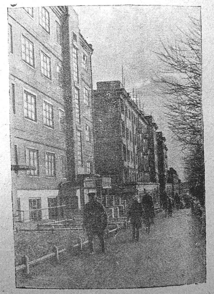 Улица Сталина из книги. Такое впечатление, что тротуар позднее влево сдвинули... Или он сейчас такой же широкий, до стены?